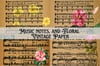 Music notes and Floral Digital Paper, Music notes, and Floral Vintage Paper.