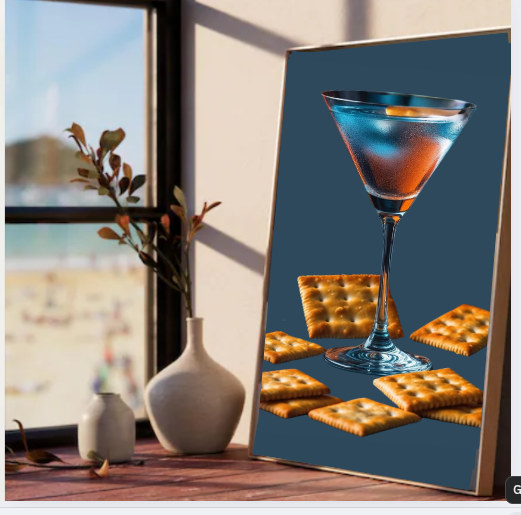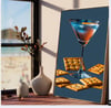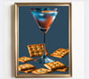 Martini and Cheese Crackers Print | Cute Quirky Whimsical | Cocktail Art Bar Cart Decor | Elegant Oil Painting Gift | Trendy Kitchen Wal