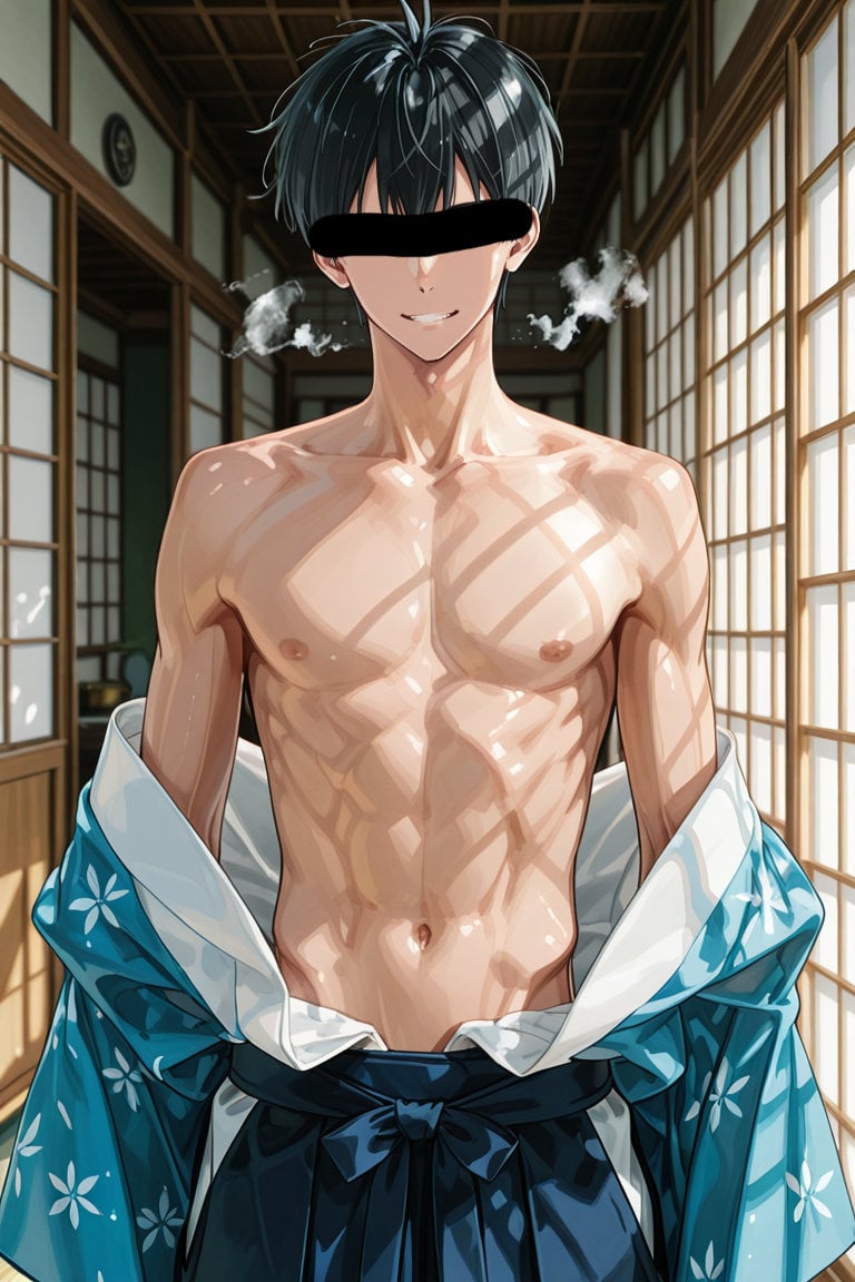 日本の正月をテーマに、着物を着用している男性を、キャラクターごとにお任せ作成しました。男らしいキャラクターの魅力を思い切って表現しました。
