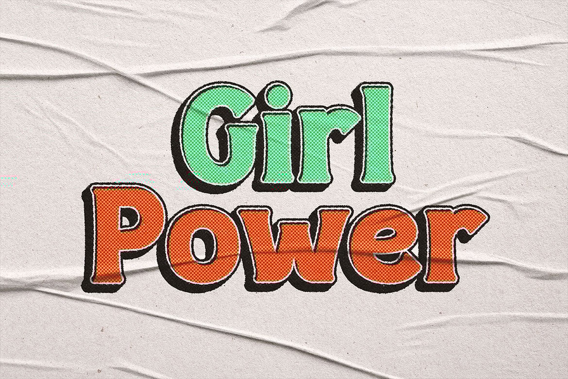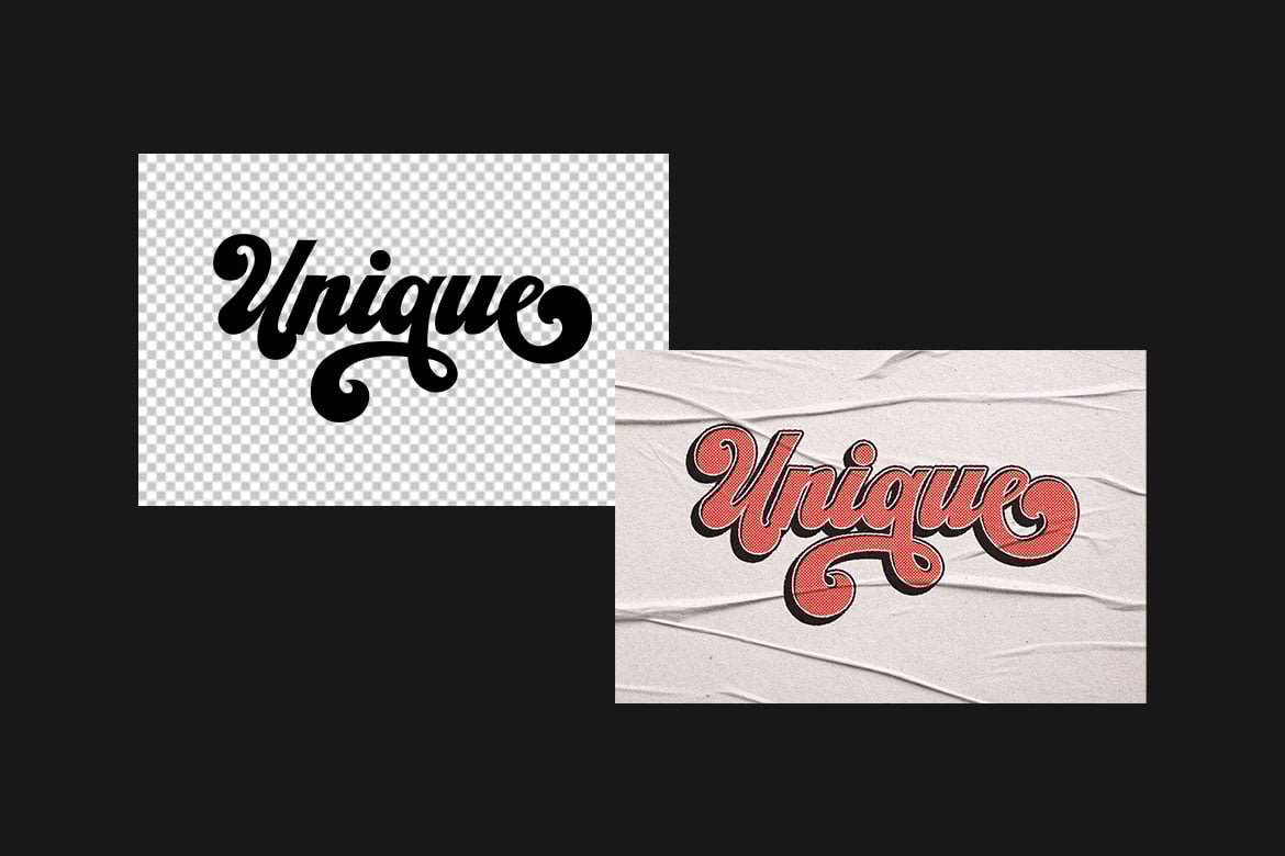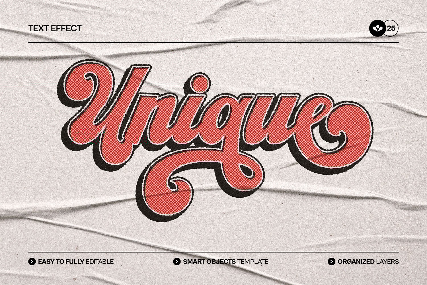 Features a retro vintage typography effect with a bold, script-style font along with a paper texture with realistic creases, enhancing the tactile and aged appearance.
