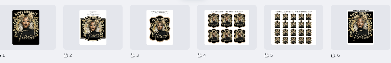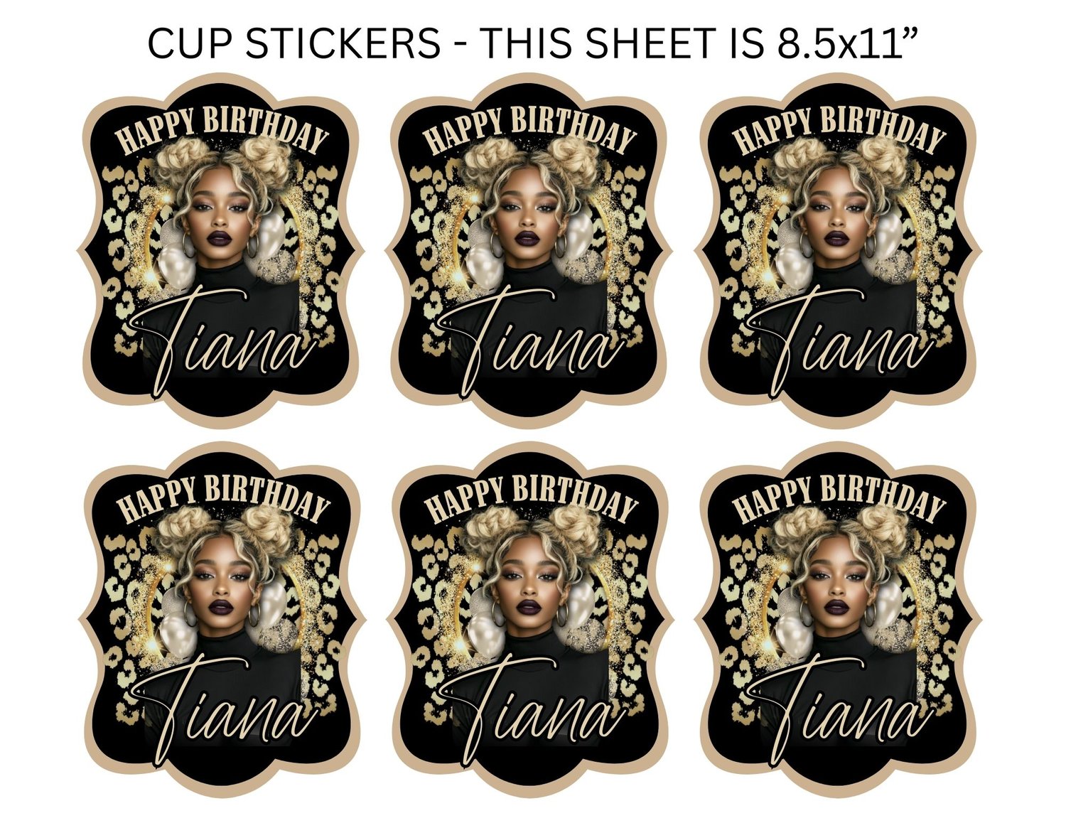 Stickers: A full 8.5" x 11" sheet with 6 individual sticker designs for personalized drink cups.