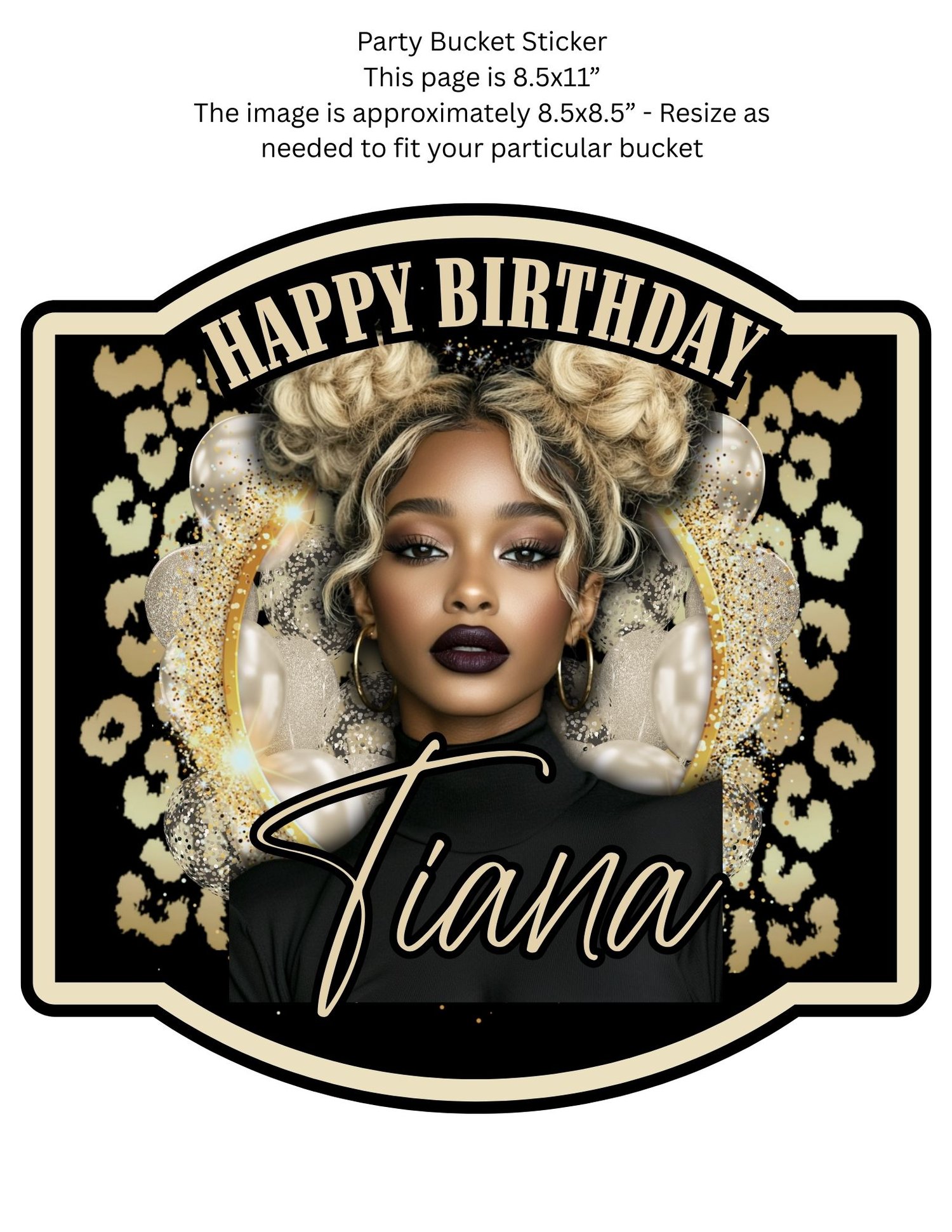 Party Bucket Sticker: 8.5" x 8.5" design (approx.) to perfectly brand beverage or snack buckets. Easily resizable.