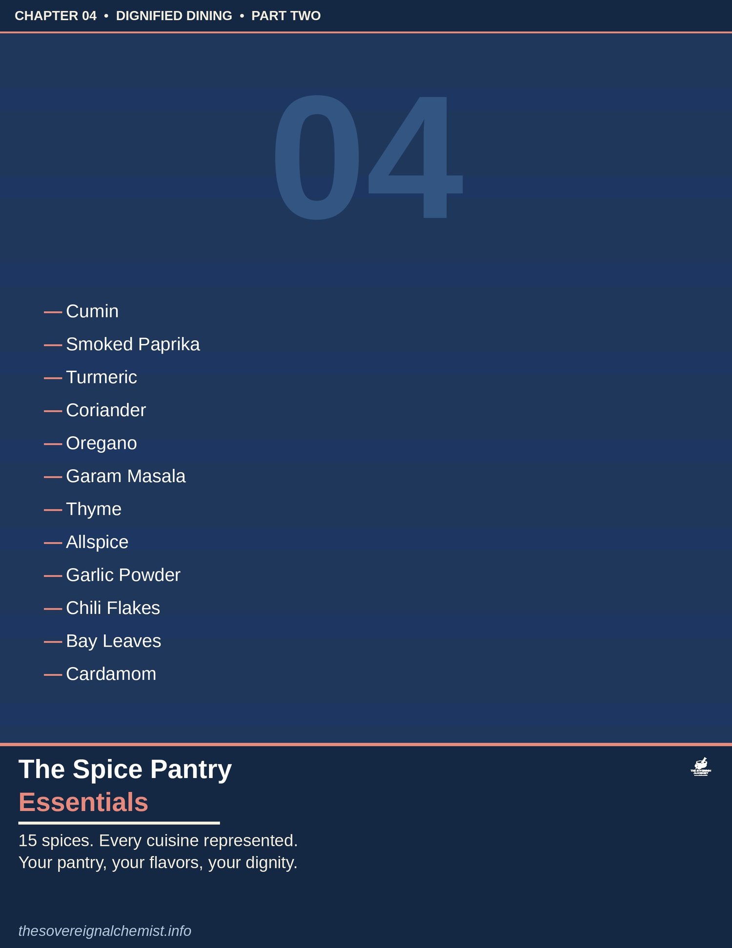 This is Part Two of the Community Kitchen Bible series by The Sovereign Alchemist. It stands alone and works immediately, whether or not you have Part One.