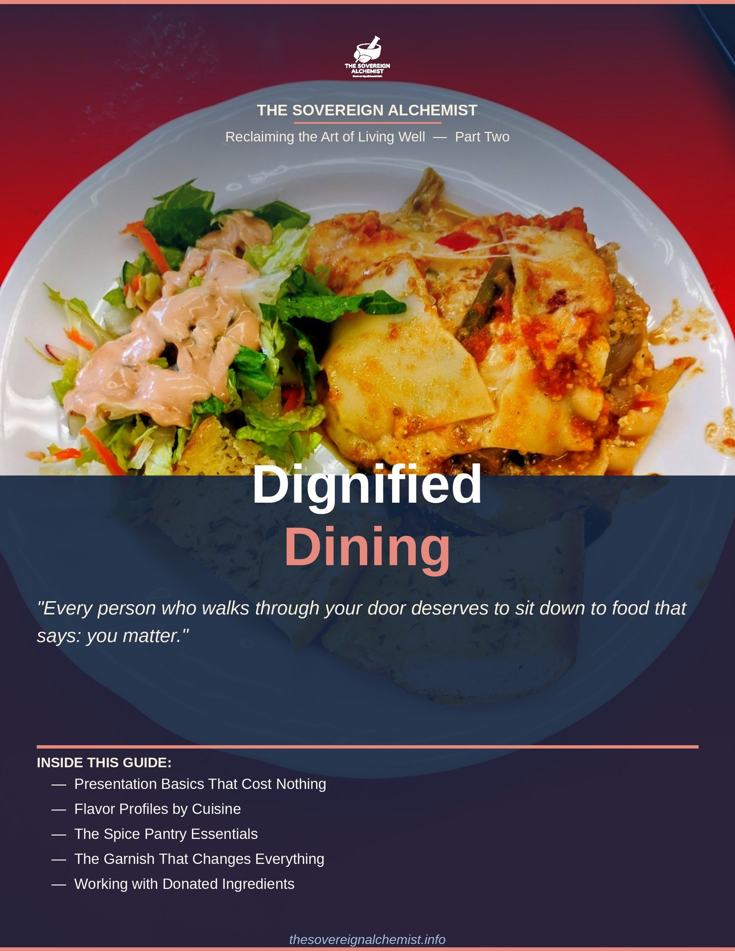 Dignified Dining is a practical guide for community kitchen coordinators, soup kitchen volunteers, and food program directors who want to bring real quality — in flavour, presentation, and care — to every plate they serve.