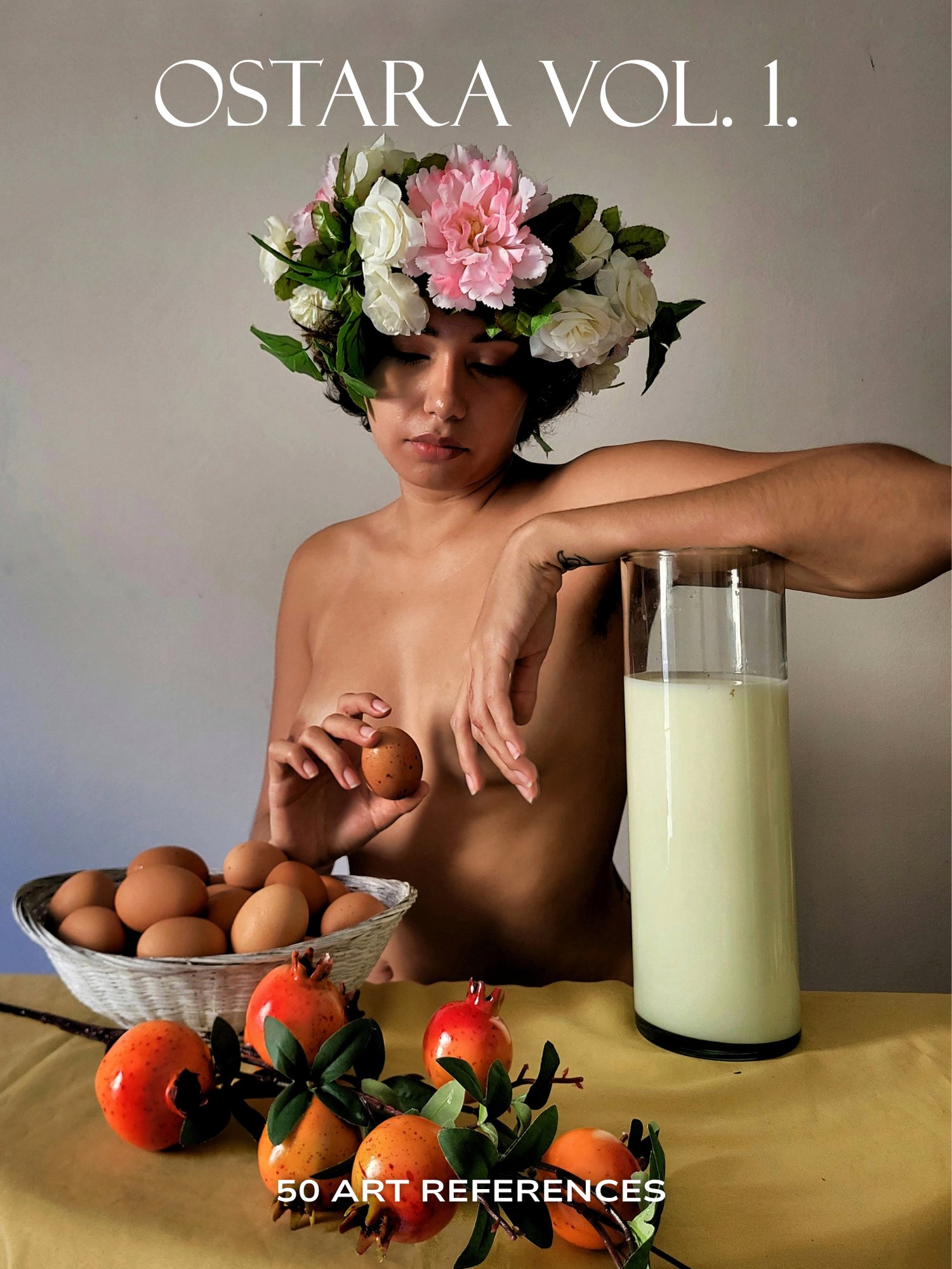 Ostara is a set of 50 references inspired by spring with elements surrounding the subject in a "still life" manner...pomegranate, eggs, milk, and flowers.