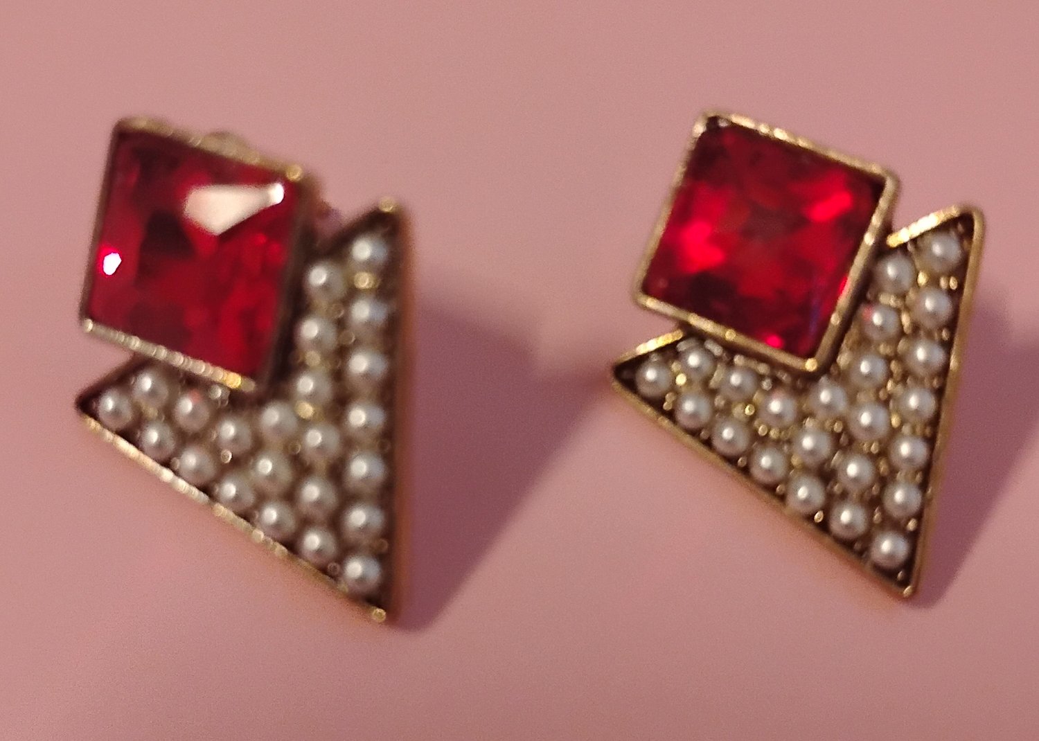 Ruby Diamond Pearl Earrings a pretty stylish pair of earrings that are unique and stylish.