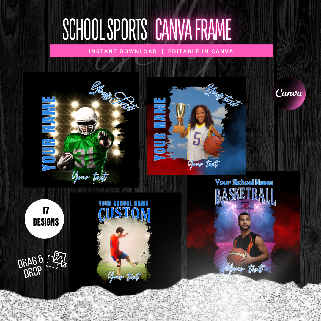 Celebrate your athleteβs big moments with these 17 editable School Sports Canva Frame Templates π Perfect for football, basketball, soccer, and more! β‘ Just drag & drop, customize names, school, and text β and youβre game-day ready!