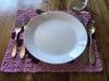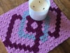 A corner to corner crochet pattern for placemat with three interlocking diamonds.