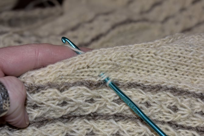 crochet hook for fastening straps, stitch markers, removable markers, tapestry needle, stitch holders or scrap yarn