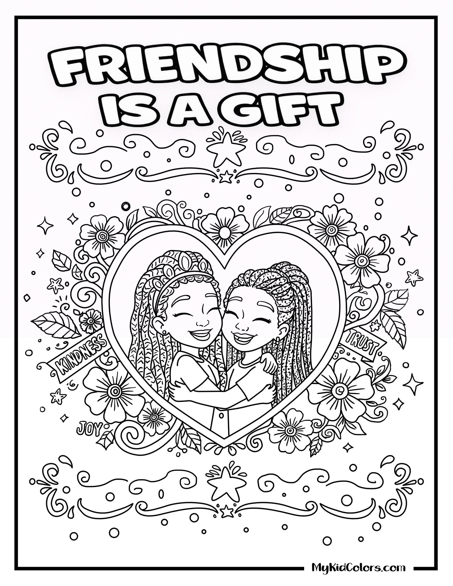 This Free Hand-Drawn Inclusive Friendship Coloring Pages set was created to help children understand what it means to be a good friend—through relatable, culturally rich illustrations that reflect real life.