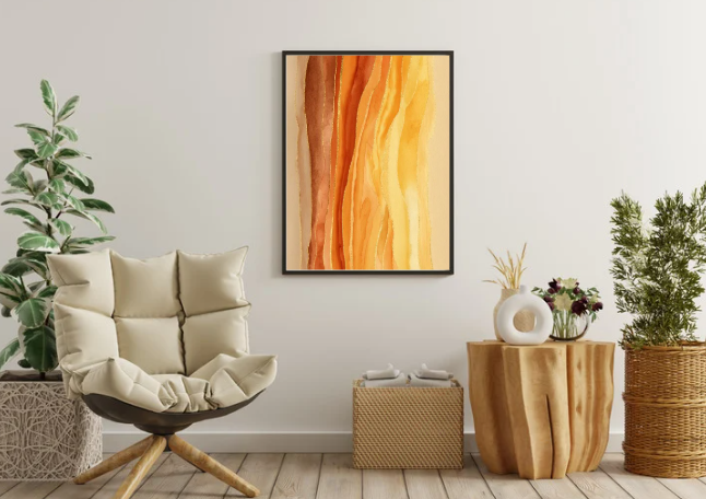 This high‑quality abstract watercolor artwork features warm layered tones ranging from soft yellow to deep orange, highlighted with elegant shimmering gold lines. The flowing horizontal composition creates a calm, modern atmosphere that suits a wide range of interiors — from minimalist homes to contemporary creative spaces. Delivered as a high‑resolution digital download in 16 sizes, this unique fine‑art print is perfect for framing, gallery walls, home décor or studio environments. A refined, premium piece that adds warmth, depth and visual sophistication to any room.