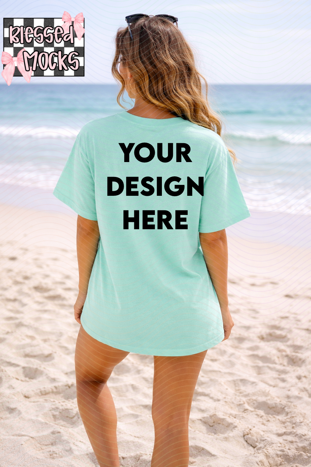 Comfort colors Chalky Mint T-shirt-Back-Beach Mock Up