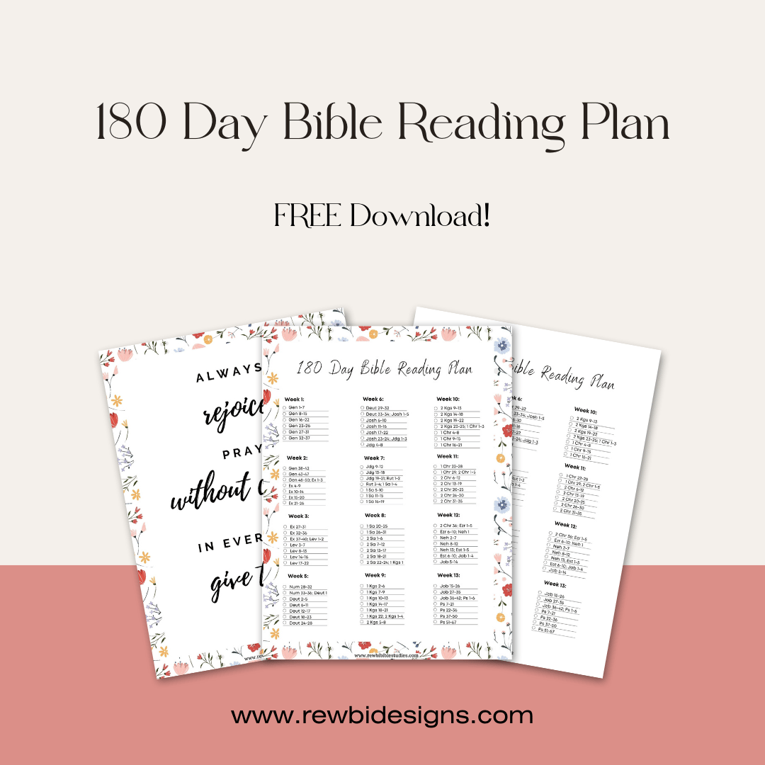 At Rewbi, we are passionate about encouraging others to read the entire Bible. In fact, our name comes from the words REad the Whole BIble! We have created this beautiful Bible Reading Plan to help you read the Bible in just 180 days. This FREE download is our gift to you!