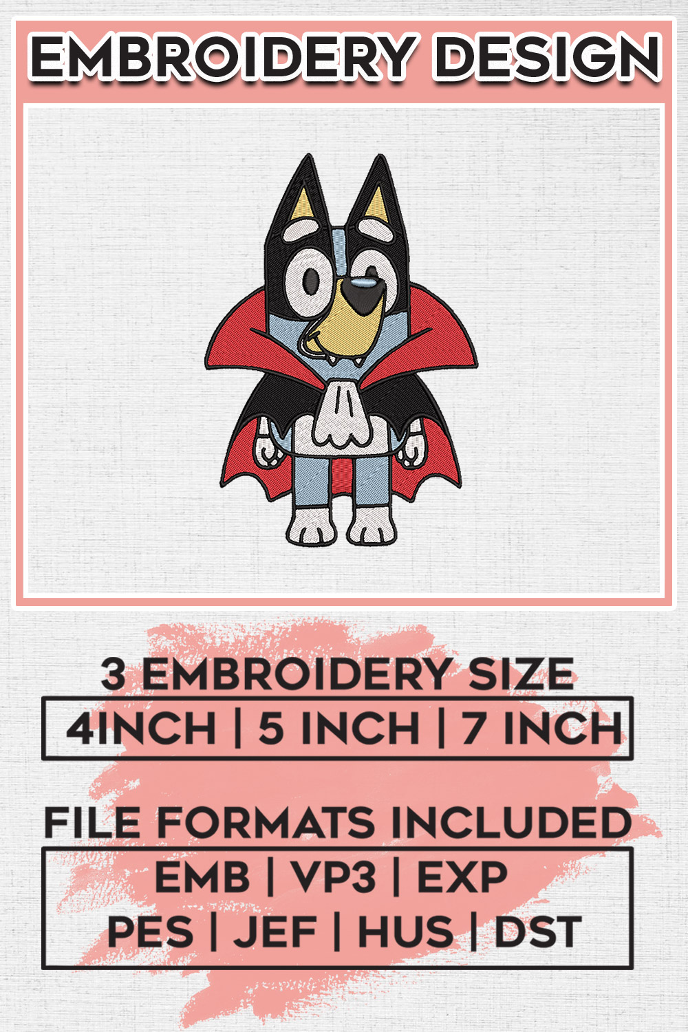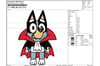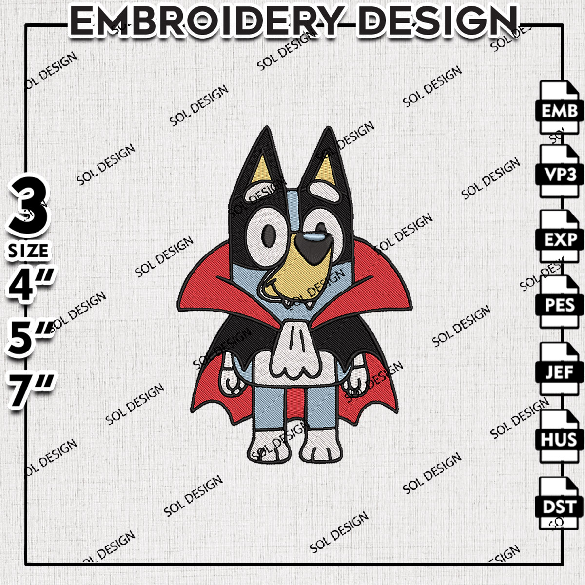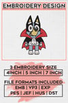Halloween Bandit Heeler Vampire Embroidery Designs, Halloween Embroidery Files, Spooky Season Embroidery, Bluey Character Machine Embroidery Design, Digital Download