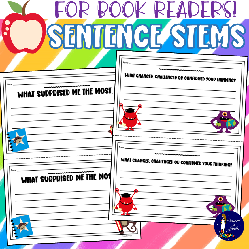 Involve writing with reading by introducing sentence stems in which your students can write and share their thought about books.
