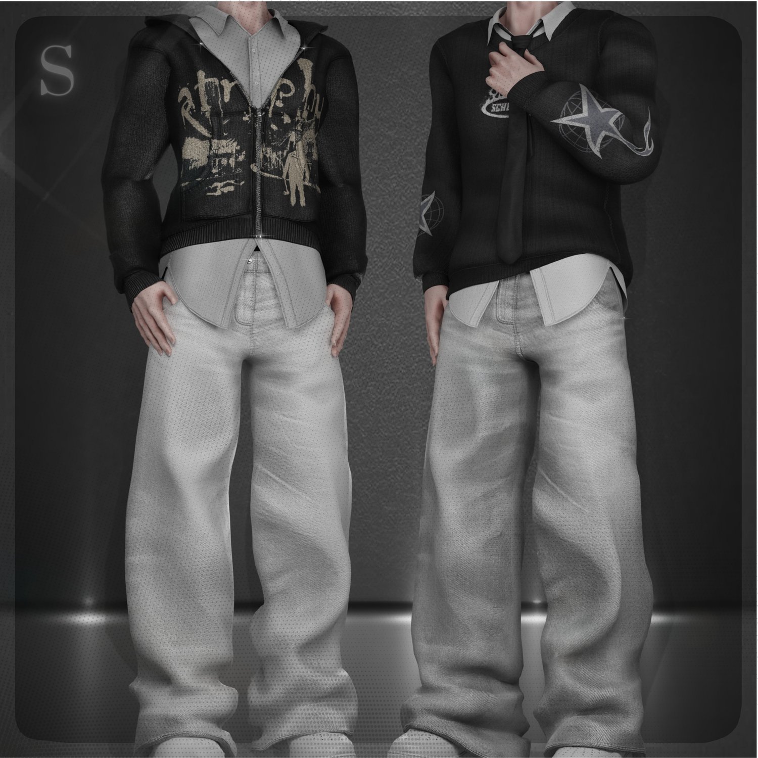 - Blend-shapes: Baggy Jeans ON, Button-Up ON, Sweater ON, Zip-Up ON, Button-Up OFF