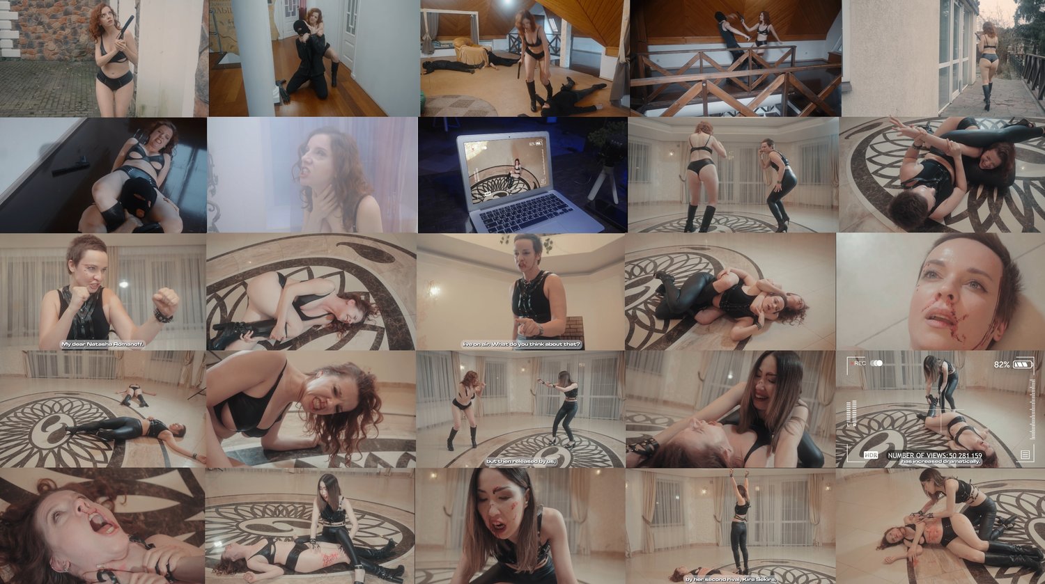The gladiatrix battle begins. Ada is very strong and she is master of MMA. She makes plenty of forbidden attacks against Romanoff and breaks her leg! Ada is already sure about her win and she’s ready for fatality but superheroine Natasha collects all her strength and catches Ada’s neck with her legs and arms and slowly strangles her. Win! Natasha is win but new opponent is waiting for her – mad sadistic Kira Sekira. Natasha has no forces for honest battle -her leg is broken, but she tries as hard as she can but unfortunately her end is coming to be terrible!