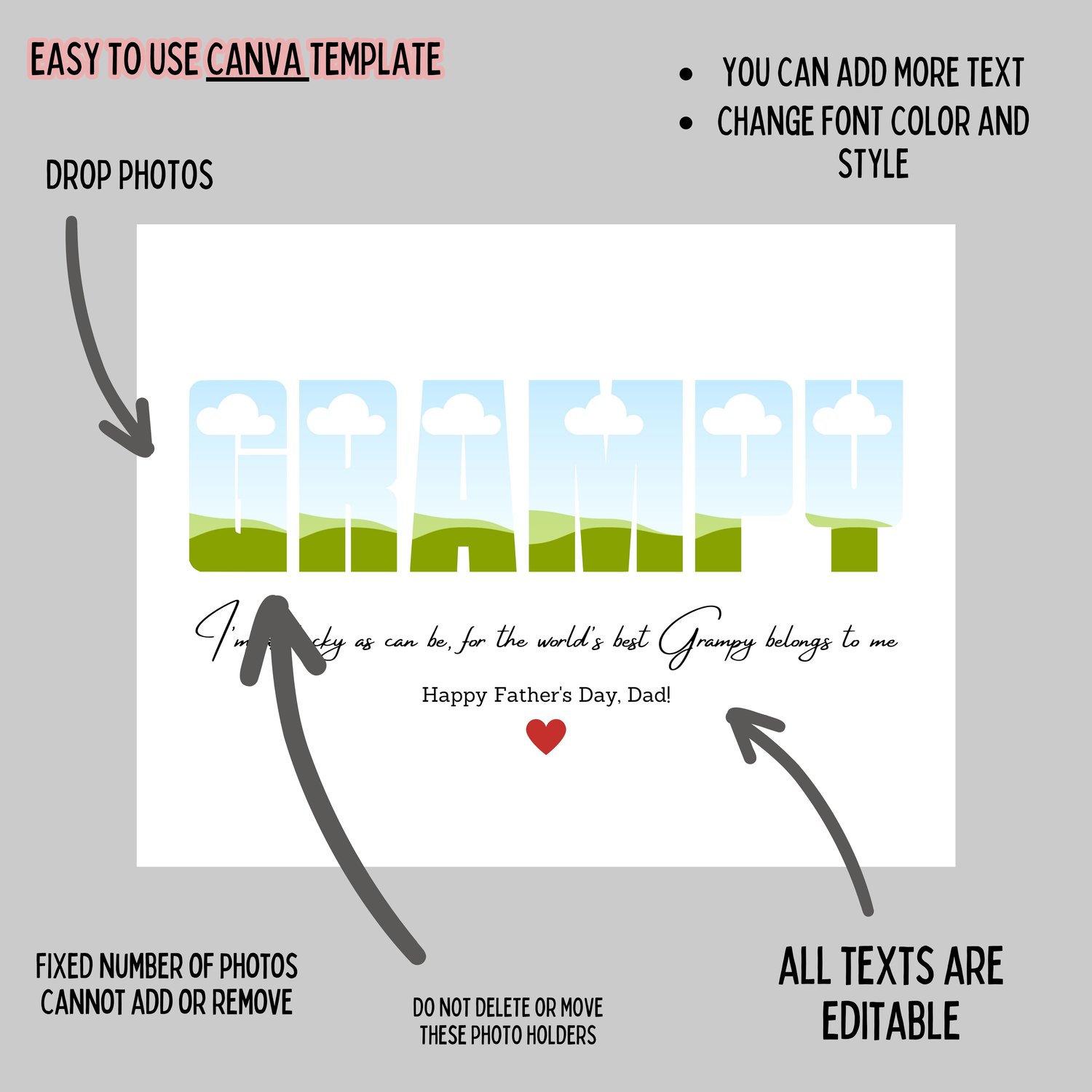 EDITABLE Personalized Photo Collage Template Gift for Grampy, Father's Day and Birthday Present for Daddy, Lolo, Digital Printable
