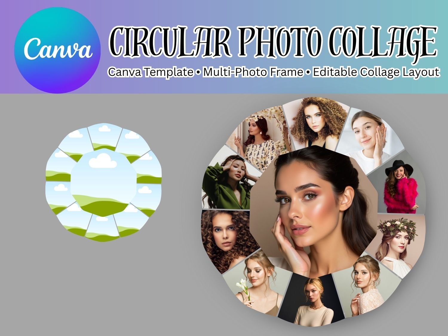 ✔ 1 Canva Template (Circular Multi-Photo Collage Frame)
