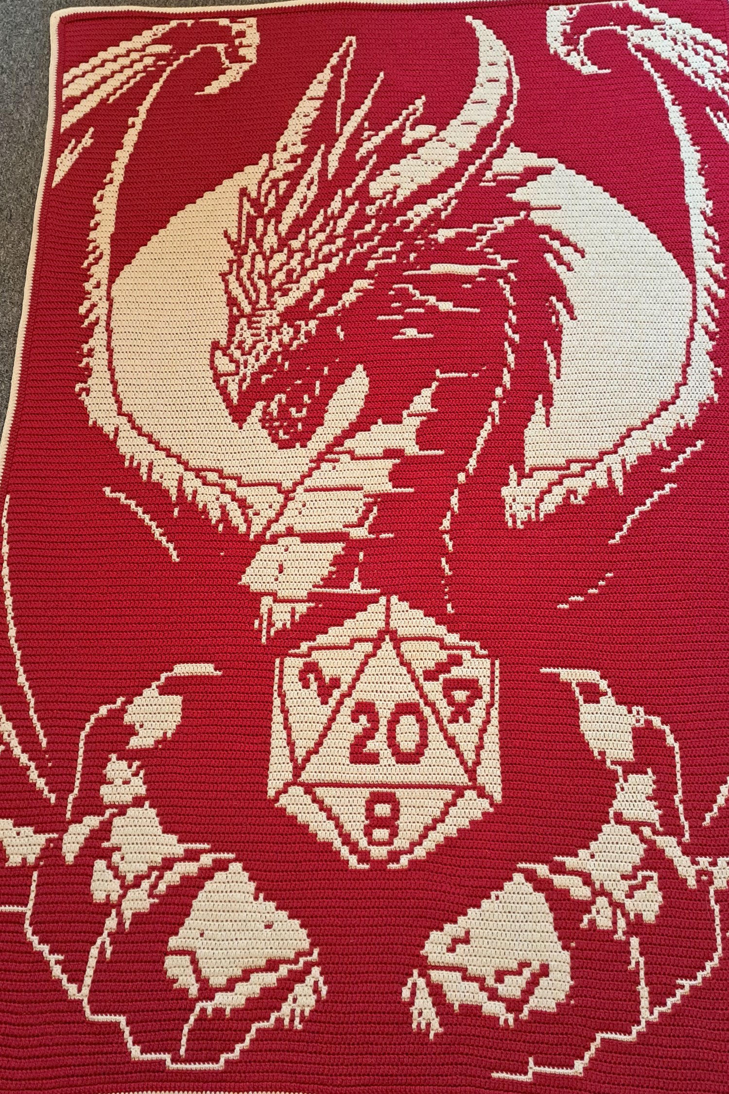 Draconic Dice | Dragon Overlay Mosaic Crochet Blanket PDF Pattern