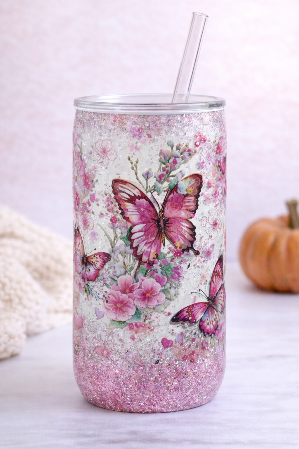 Featuring beautifully detailed butterflies, watercolor florals, and a light glitter-style background, this design creates a dreamy, feminine look that’s perfect for everyday cups or thoughtful gifts.