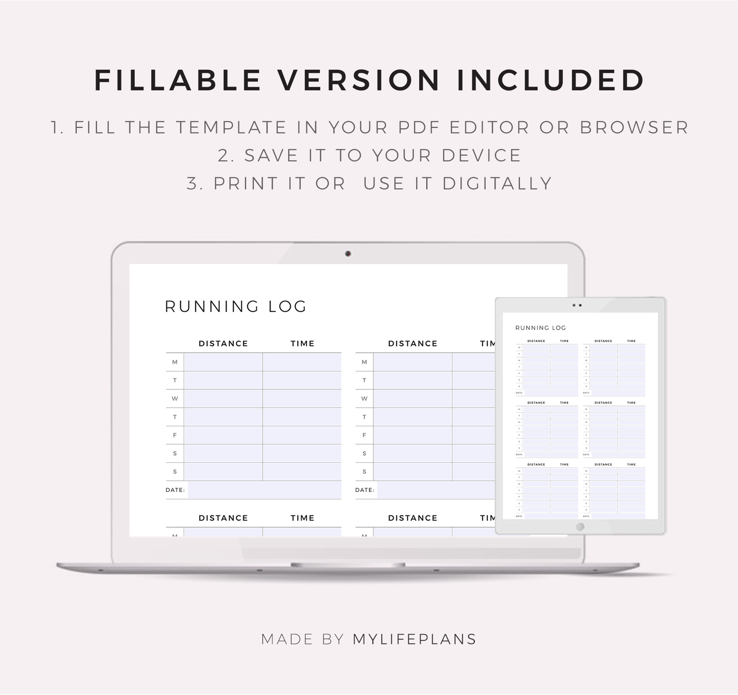 This is a printable weekly running log — just download, print, and start using it right away.