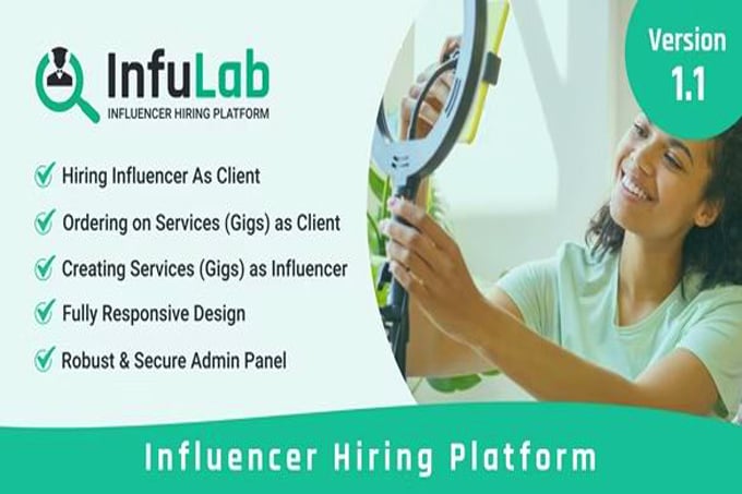 Are you looking for a complete Influencer Hiring Business solution system for your business, then you are in the right place. No need to pay thousands of dollars to hire developers to build your Influencer Hiring Website. InfuLab, may assist you to handle unlimited users, Influencers, Transactions, deposits, withdrawals, KYC’s, able to accept payment via cards, cryptos, and mobile money. the ready-to-go solution, it takes only a few minutes to set up your website with our system. we are also here to provide you best support, installation, and customization if you need it. hurry up, get your copy and start your Influencer Hiring website.