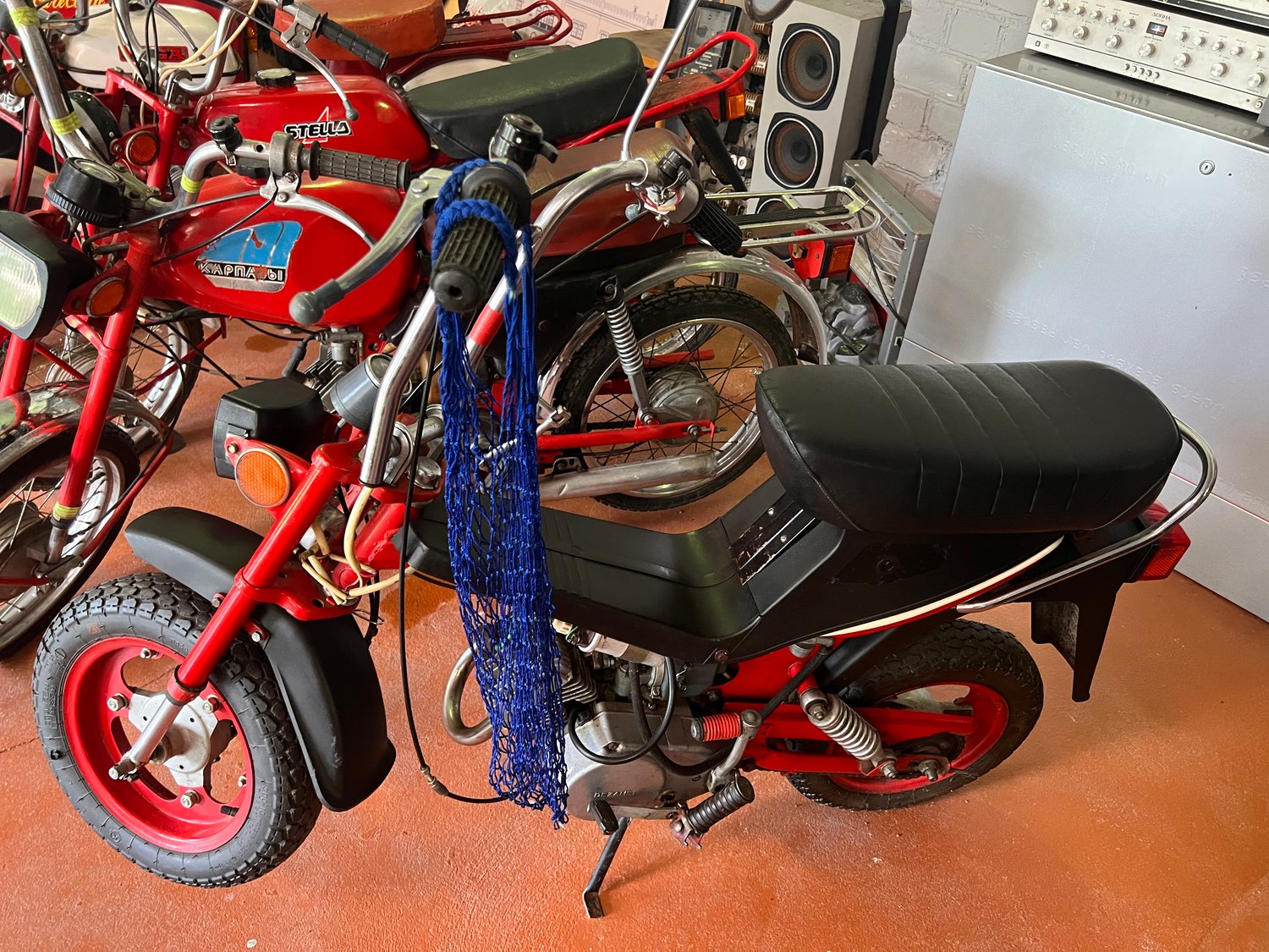 Red moped STELLA is for sale for 10,000.00 EUR. Moped was made in the Soviet Union.