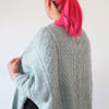 The pattern further explores different techniques of Japanese knitting, including two types of wrapped stitches. The textured panels feature cable-looking designs that are composed of not cables, but traveling stitches - a combination of increases and decreases that has an appearance of cables without adding bulk to the fabric.