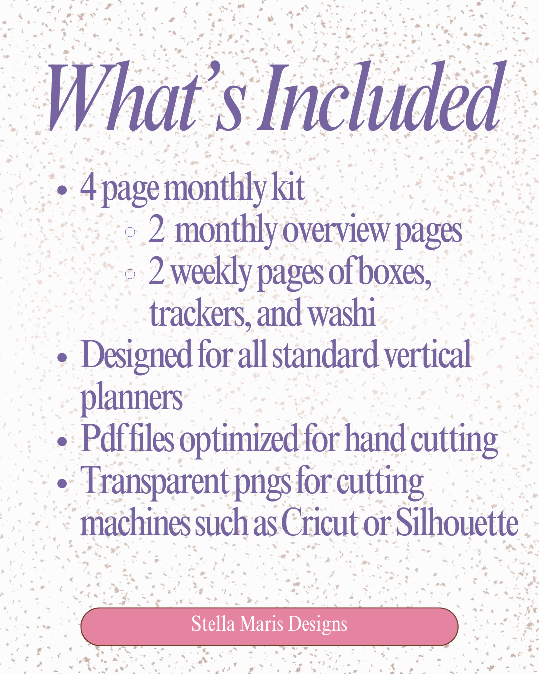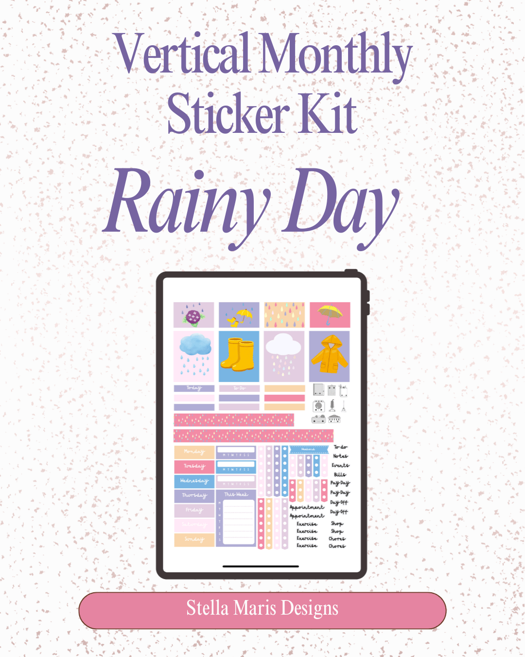 A pastel rainy‑day aesthetic designed for Standard Vertical monthly layouts. Soft colors, raindrops, and cozy illustrations create a calm, refreshing monthly overview while keeping everything functional and easy to use.