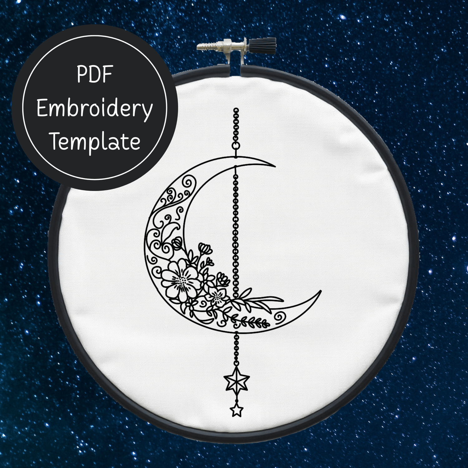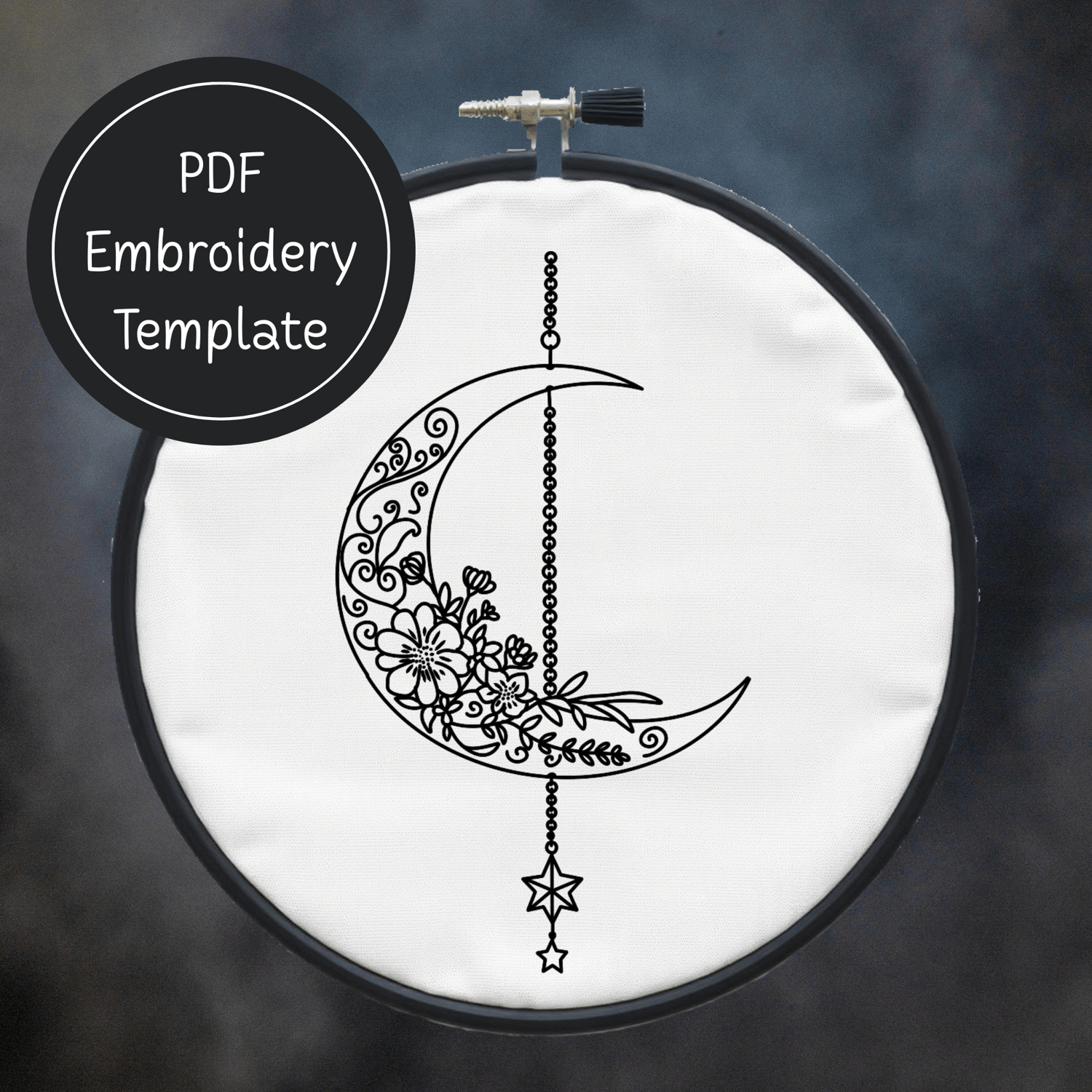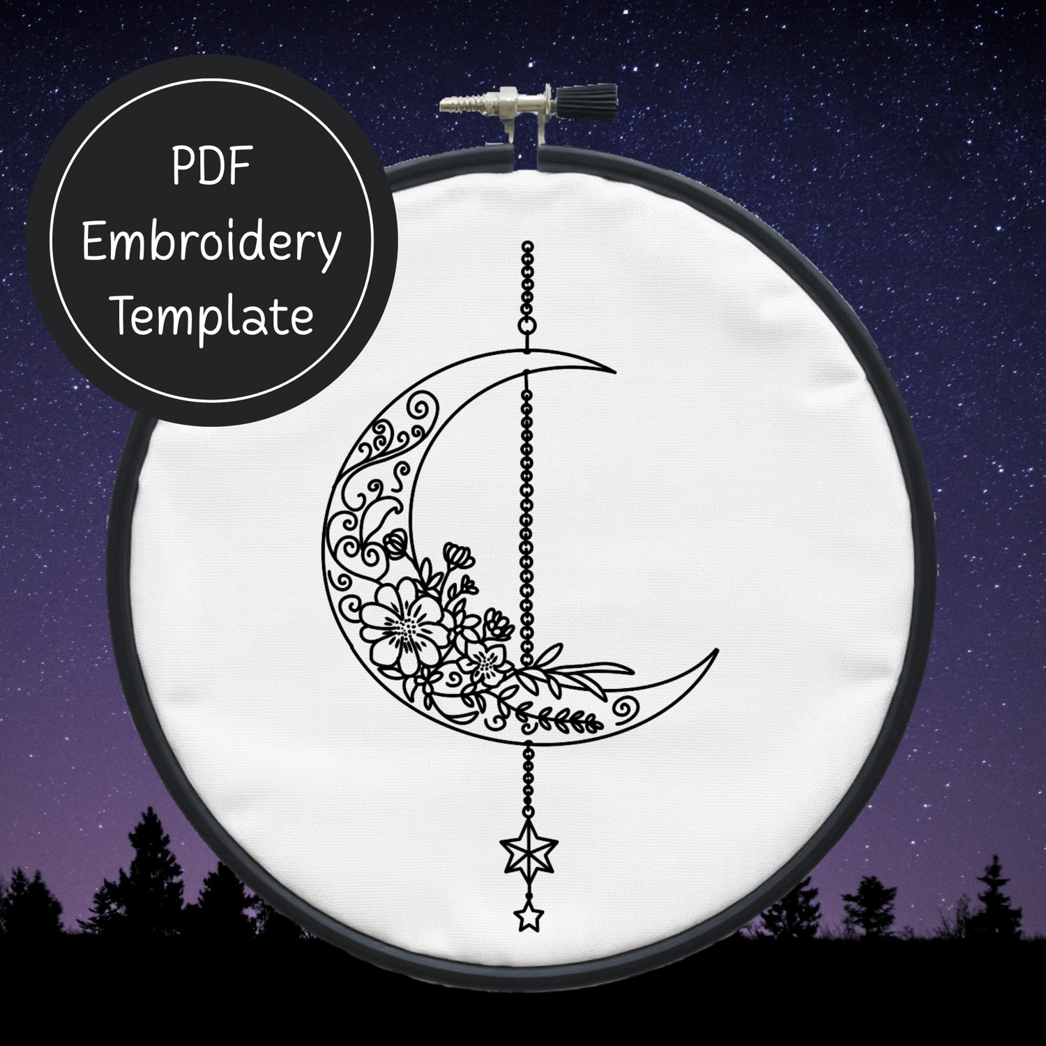 Moon Ornament Embroidery Template PDF - DIY Celestial Series Design For Hand Stitching - Instant Download