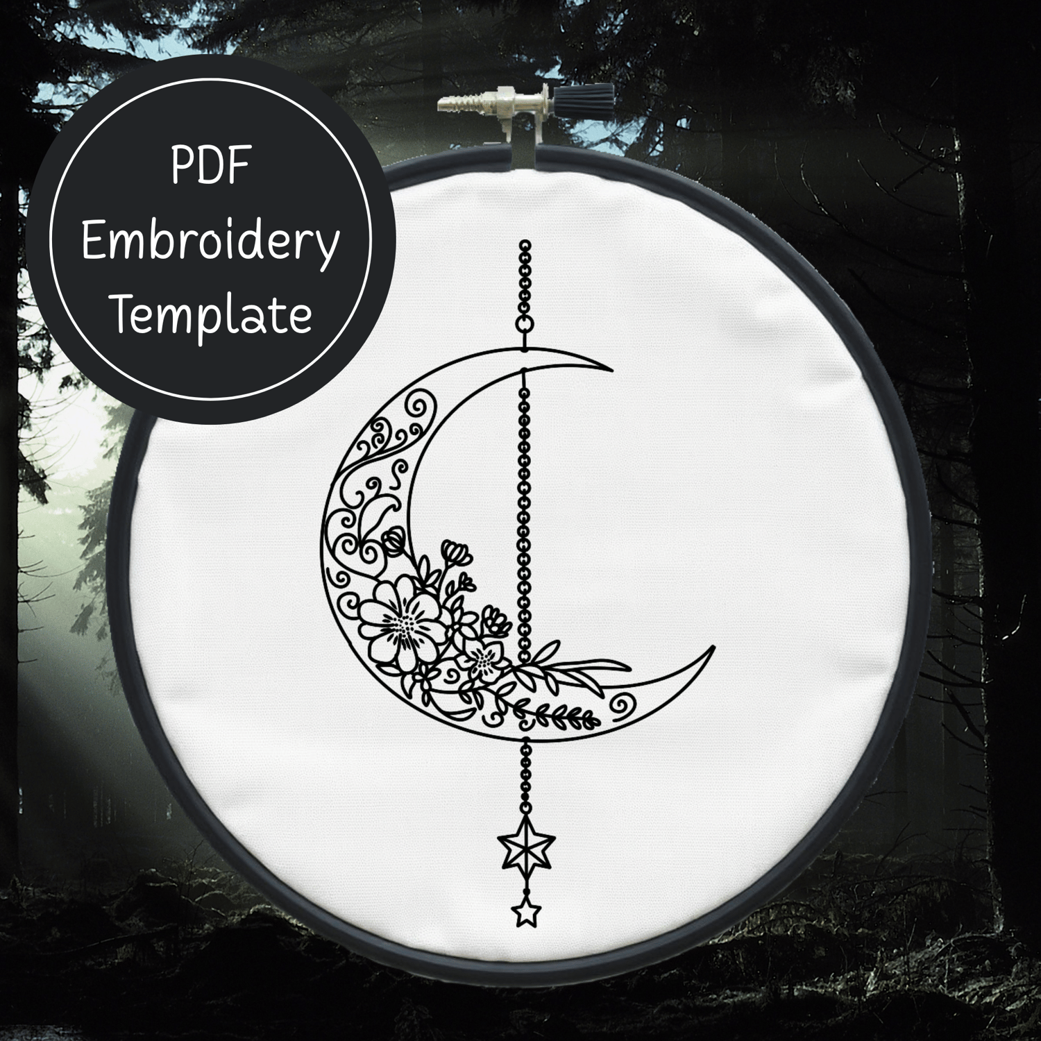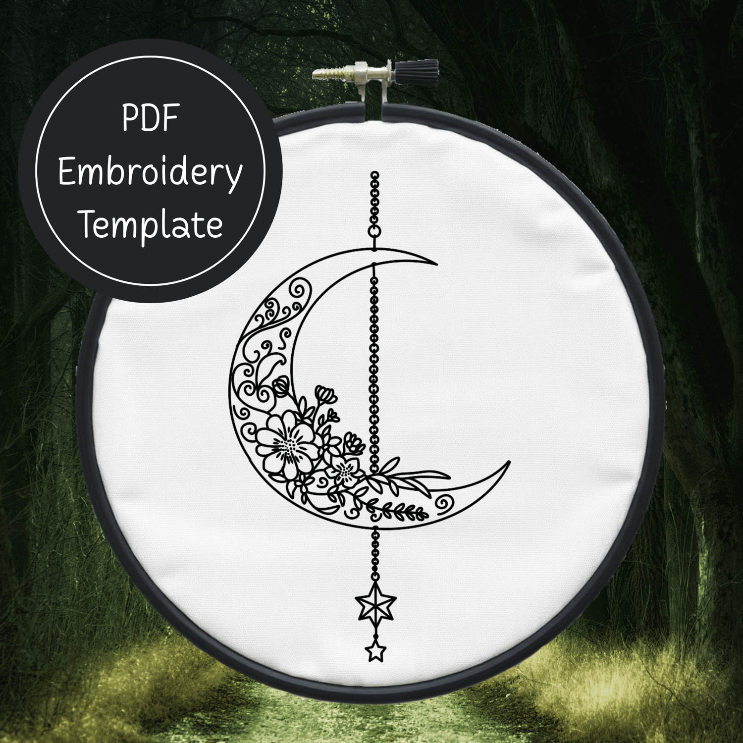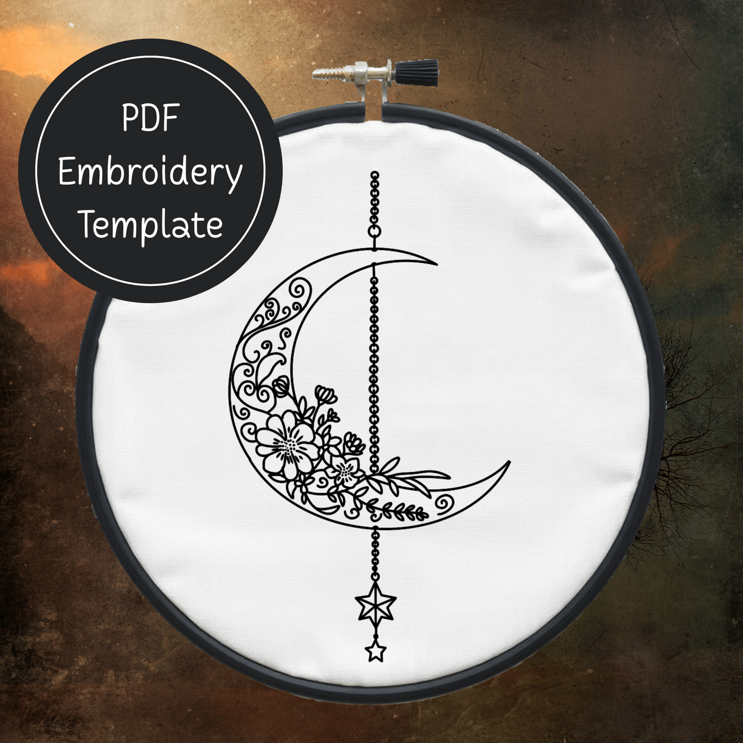 Moon Ornament Embroidery Template PDF - DIY Celestial Series Design For Hand Stitching - Instant Download