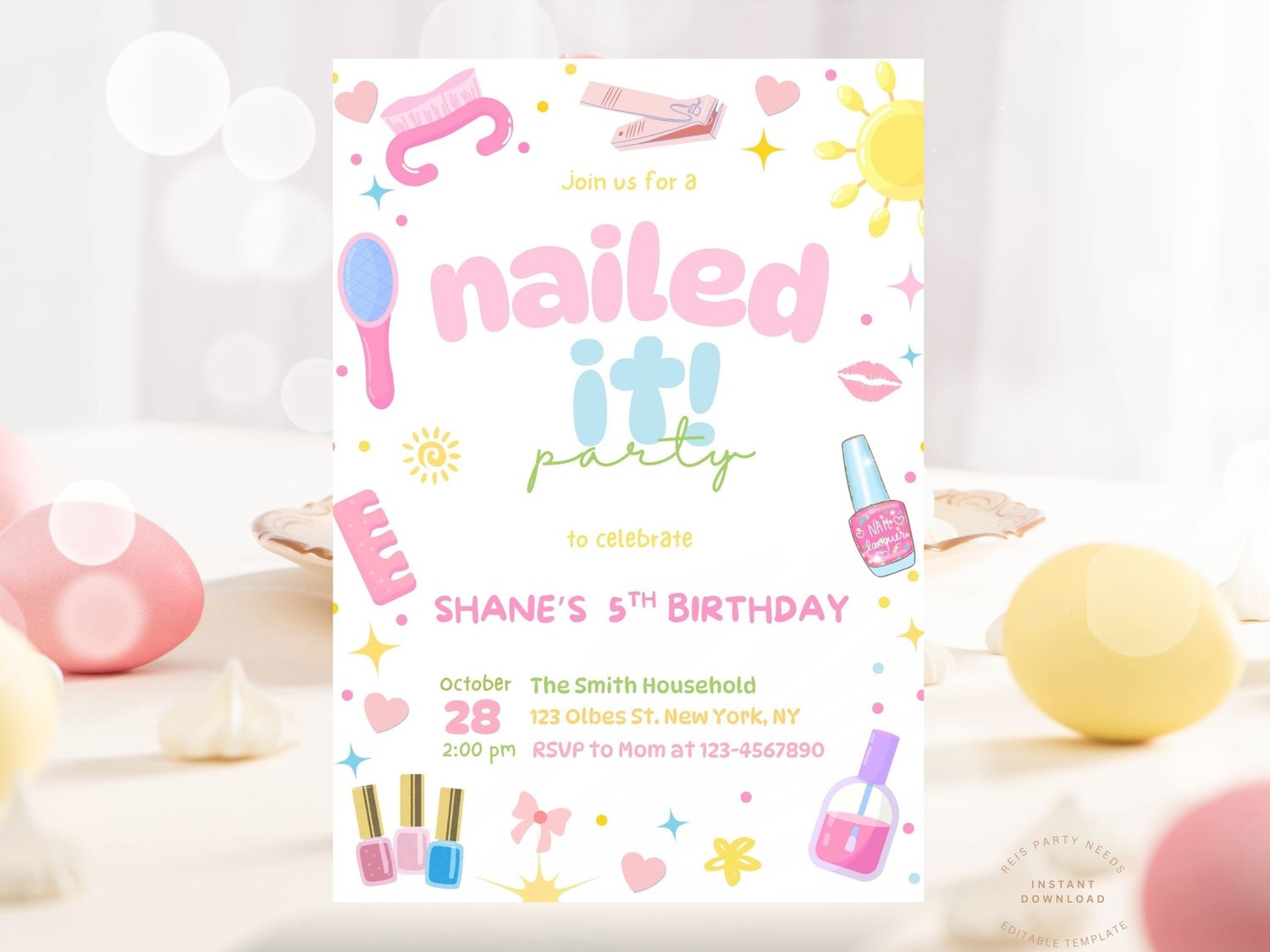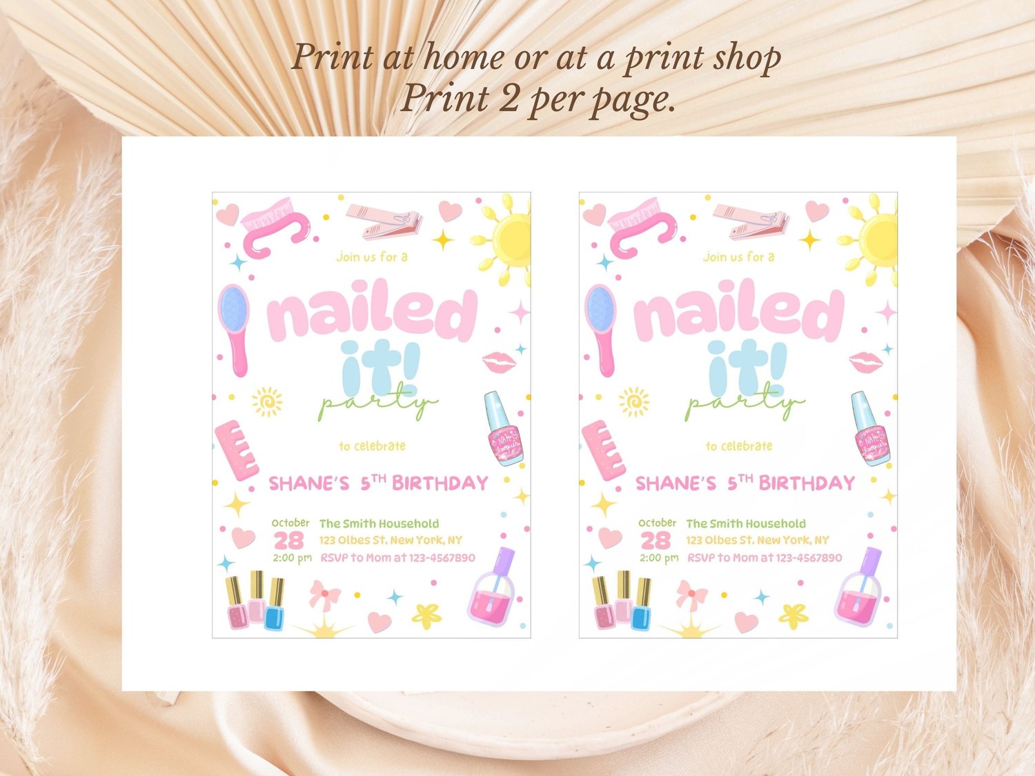 Pastel Nailed it Birthday Invitation, Mani Pedi Birthday Invite, Teens Pamper Day Birthday Invitation
