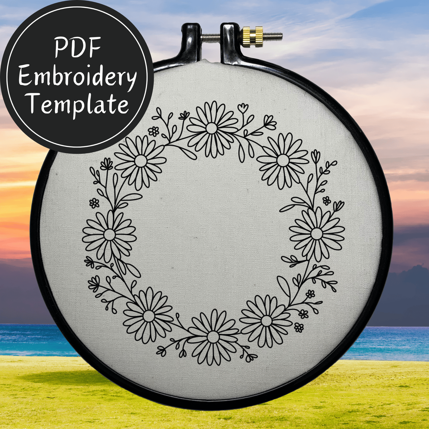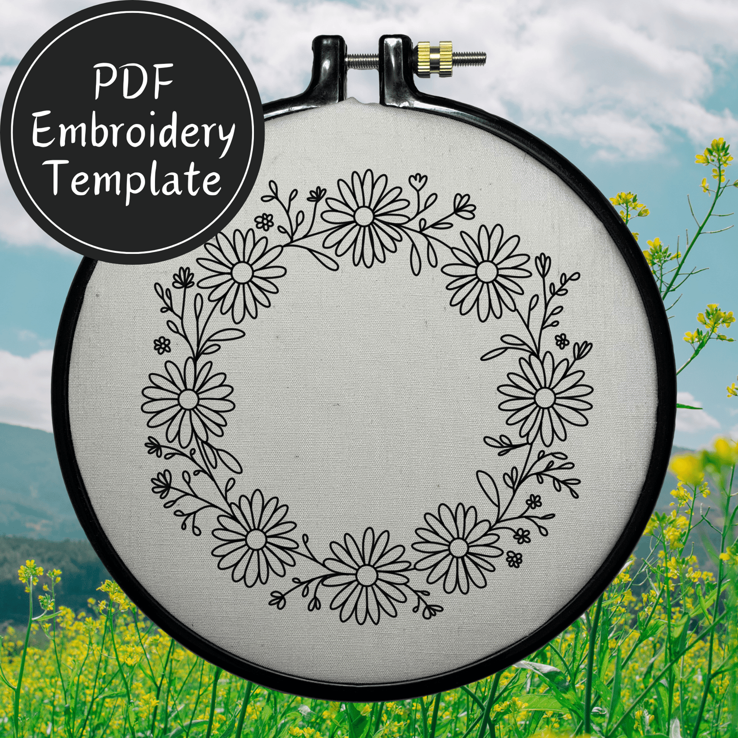 Daisy Chain Wreath Hand Embroidery Pattern DIY Embroidery
