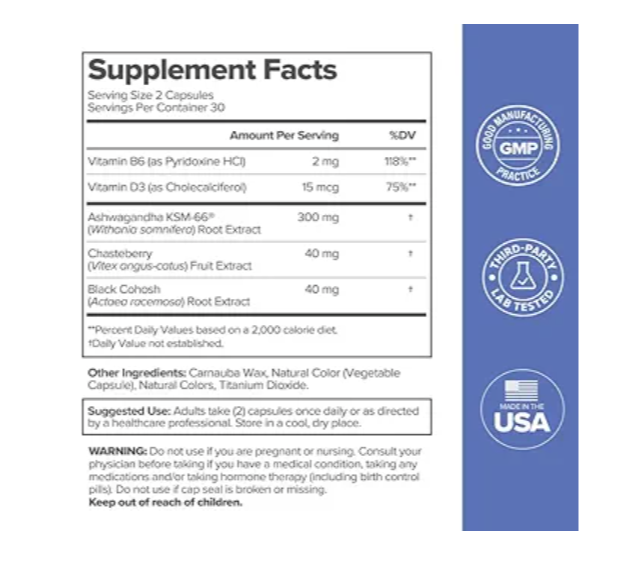 Science-Backed Ingredients: MENO is formulated with Black Cohosh, Ashwagandha, Chasteberry, and Vitamins D3 & B6. Black Cohosh has been clinically shown to relieve hot flashes and night sweats, and Ashwagandha has been shown to support sleep quality.*