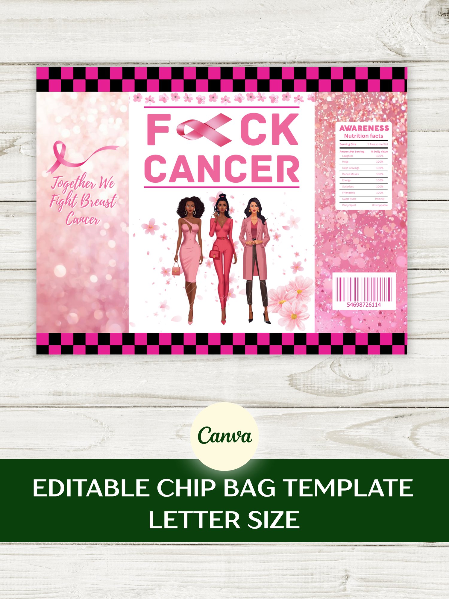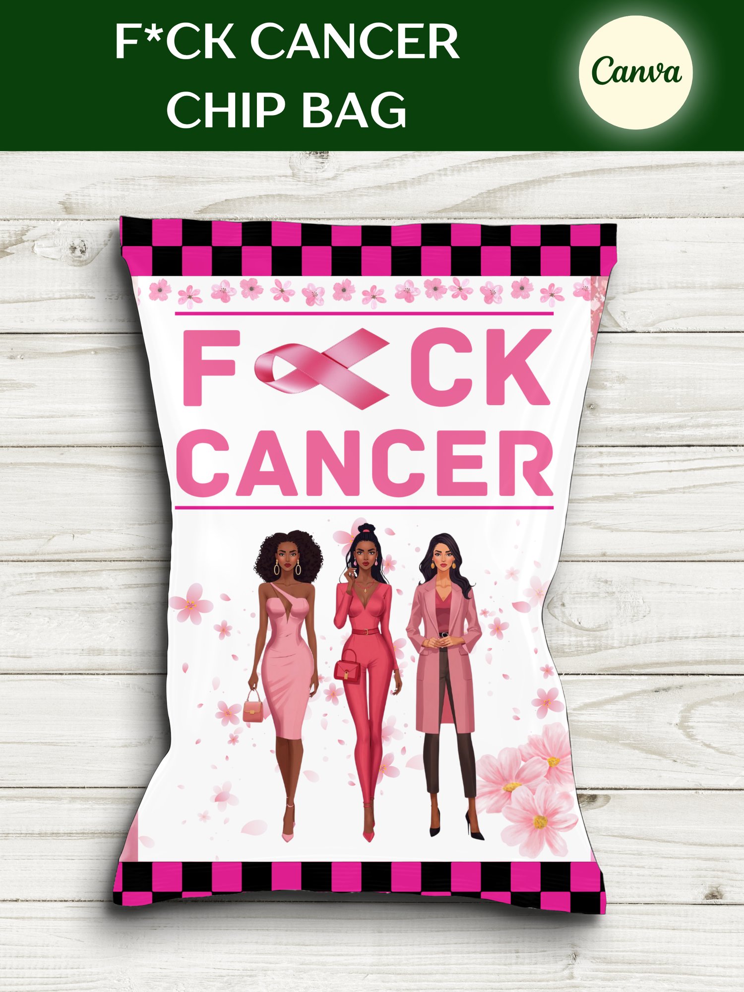 F*ck Cancer, Breast Cancer Chip Bag Template (Canva Digital Download)