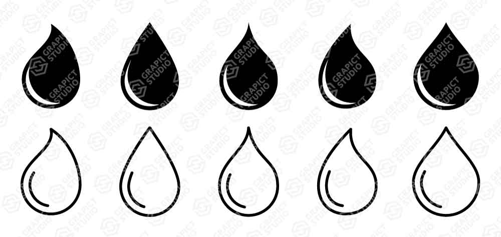 Water droplet icon design element suitable for websites, print design or app. Flat color, glyph style and outlined style icon, vector clipart.