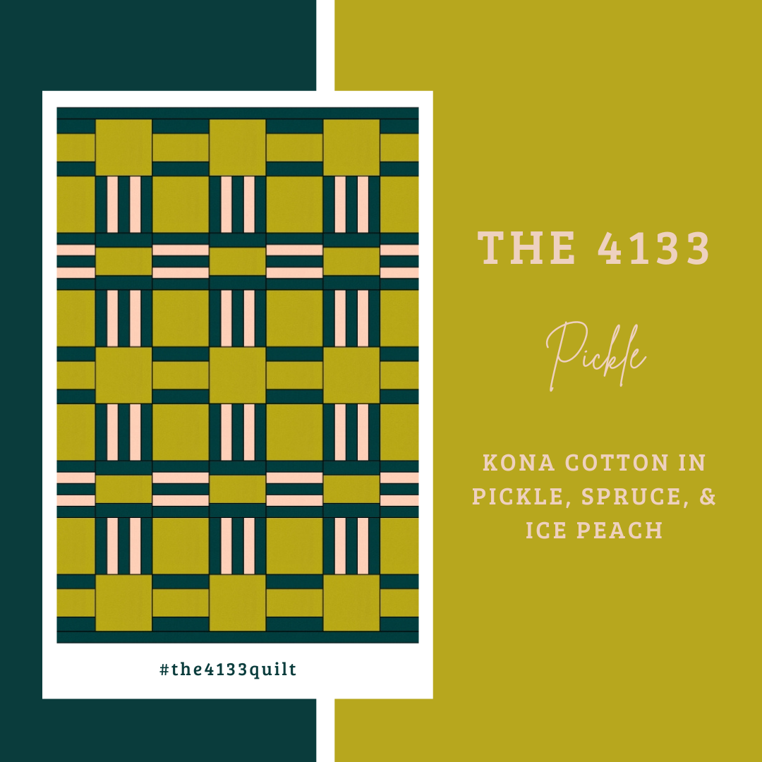 My version of The 4133 Quilt is made with Kona Cotton Spruce, Sky, and Old Green, but I can't wait to see your own version of The 4133 Quilt! Be sure to use the hashtags #the4133quilt and #millieandbundesigns on Instagram so I can see what you have put together.