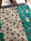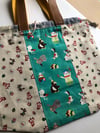 Measures between 32-35 cms by 32-38 cms, has 1 inside pocket, leather handles made from waste of shoes industry.