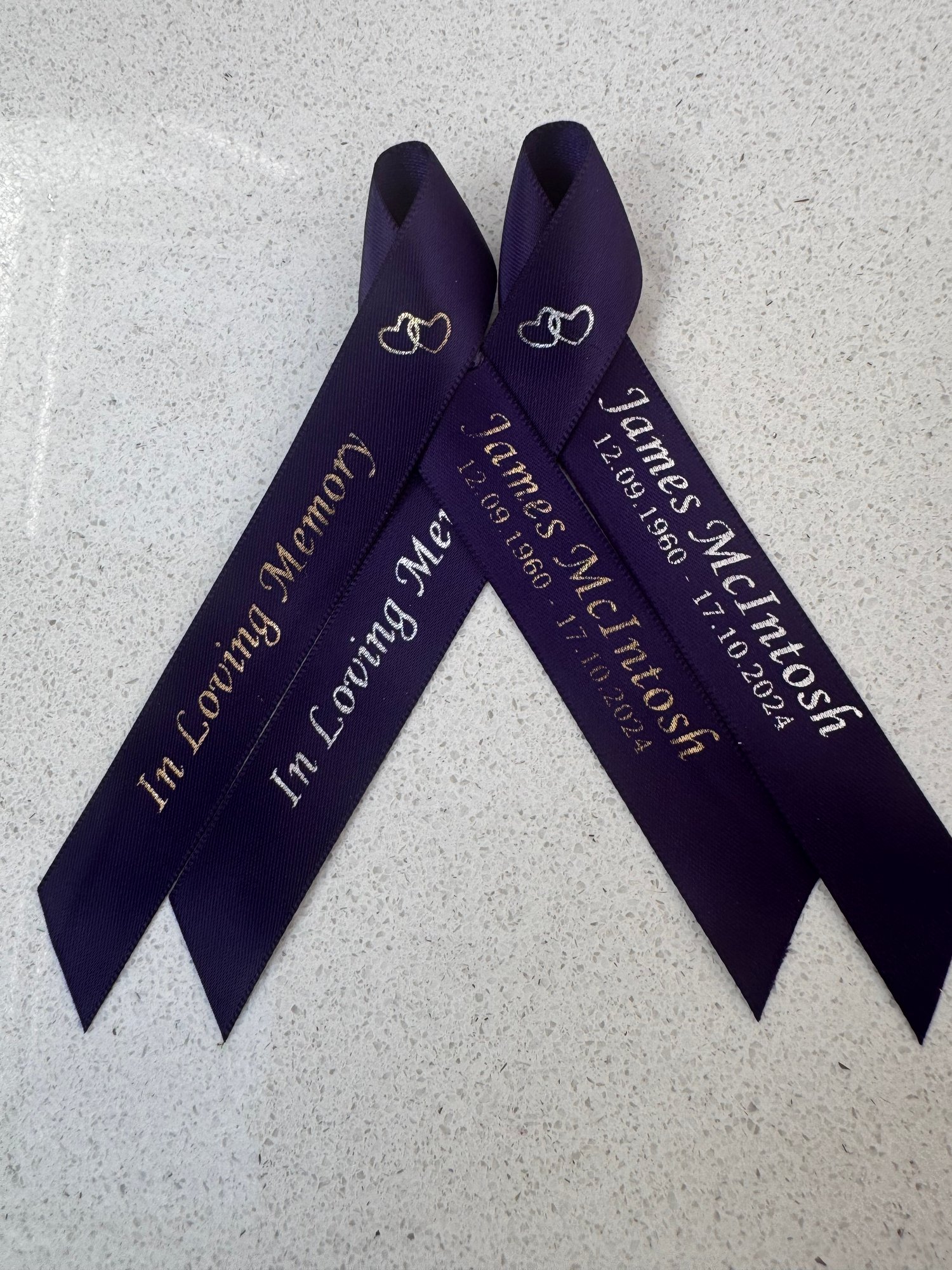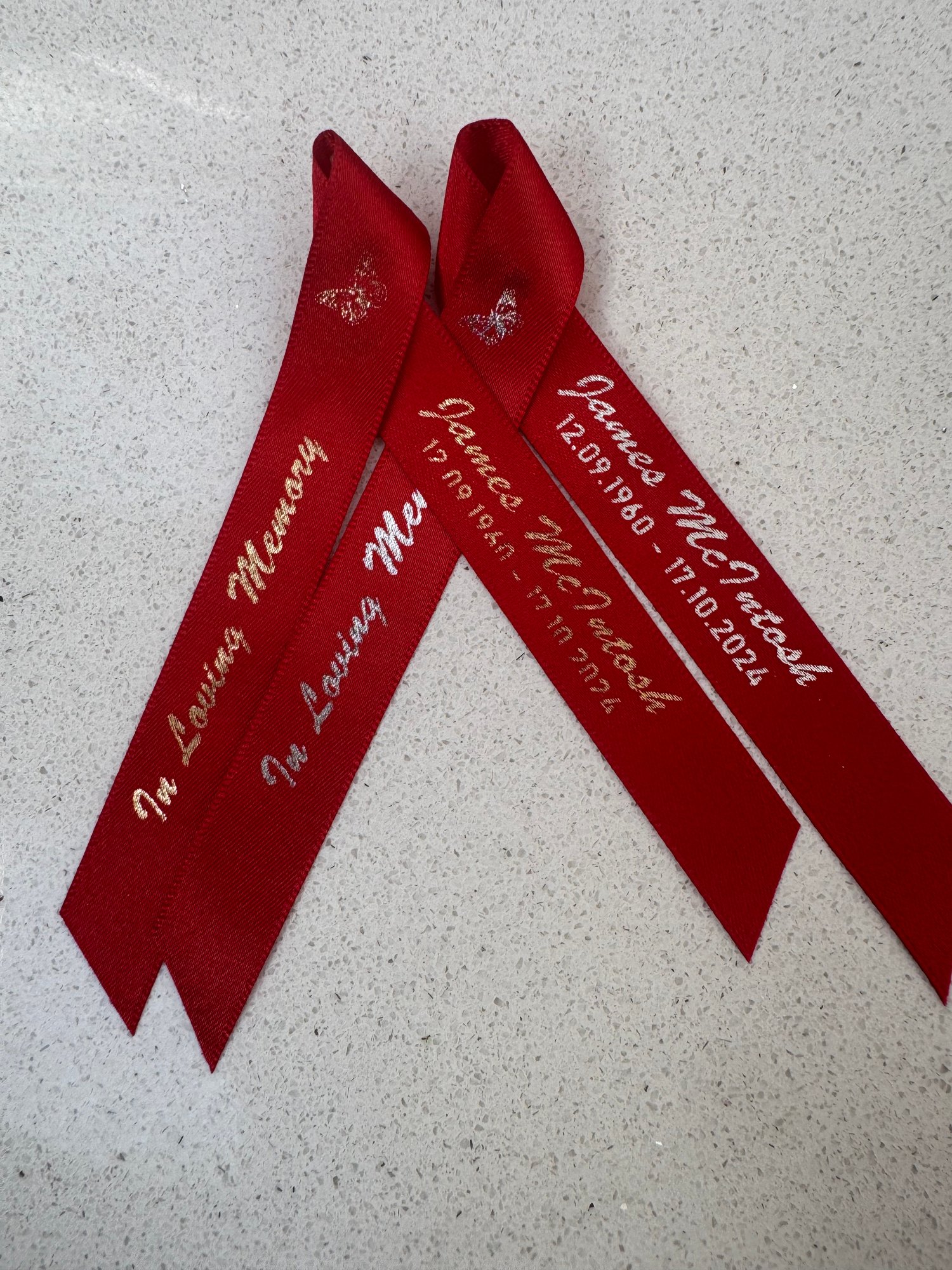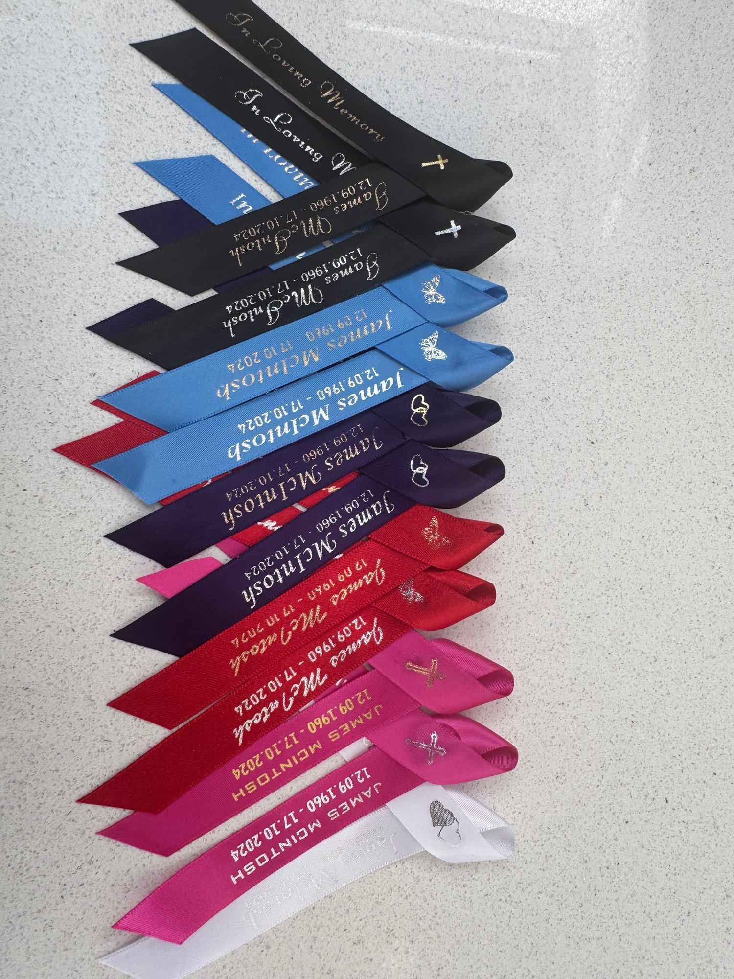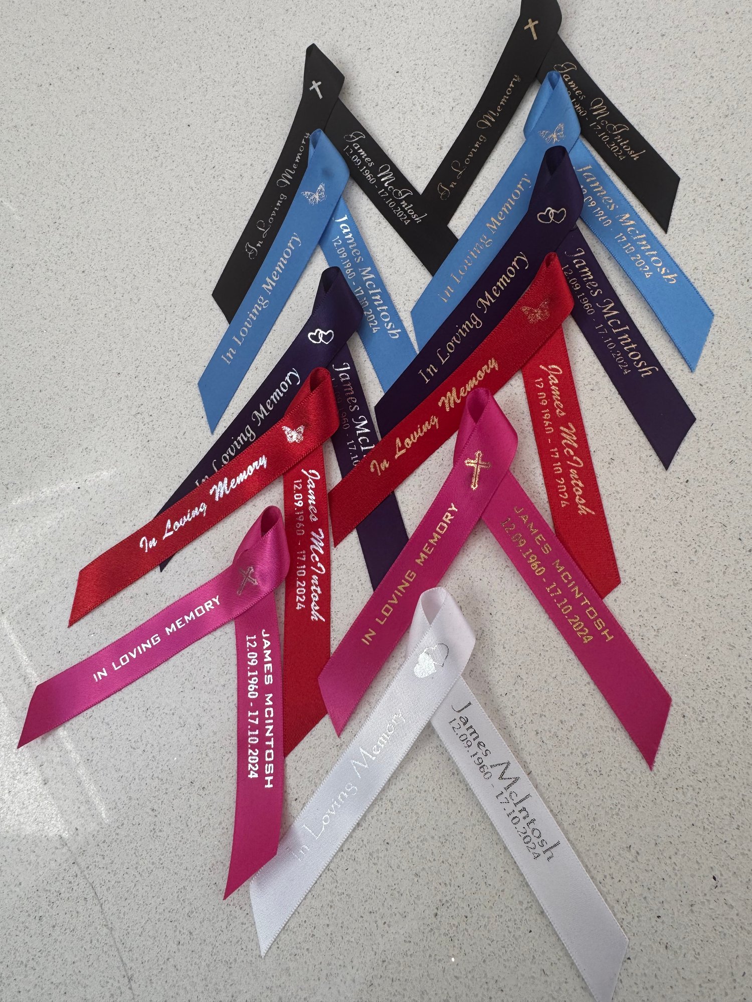 please email studiosigna123@gmail.com stating: name, Date of birth and the message number and colour of ribbon(as shown in photo)