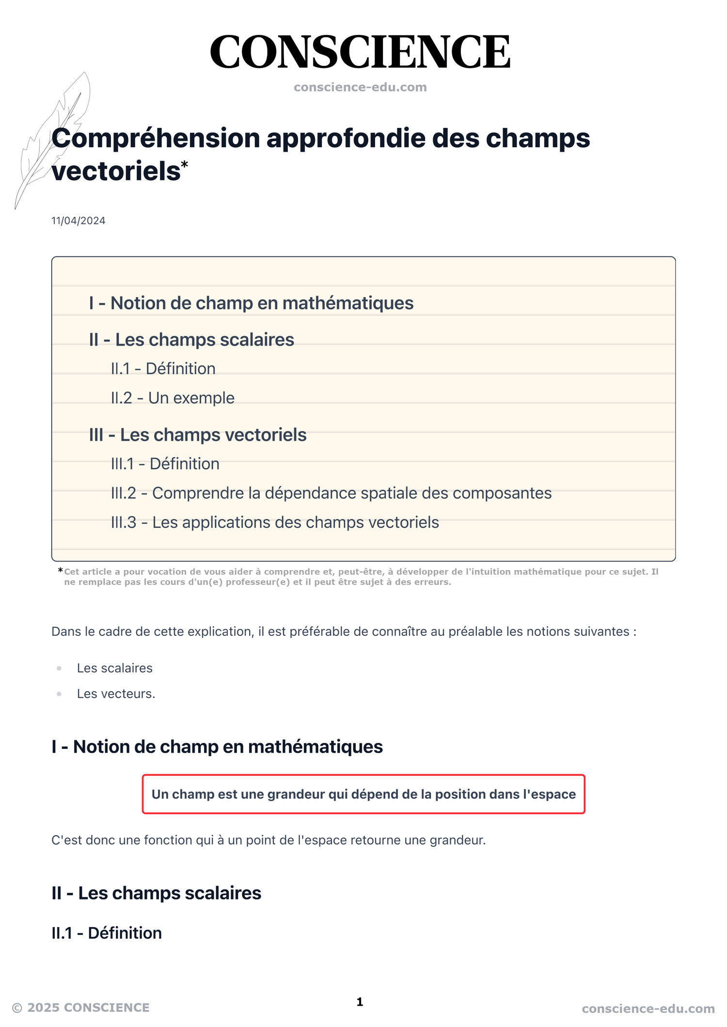 Compréhension approfondie des champs vectoriels - Version PDF imprimable
