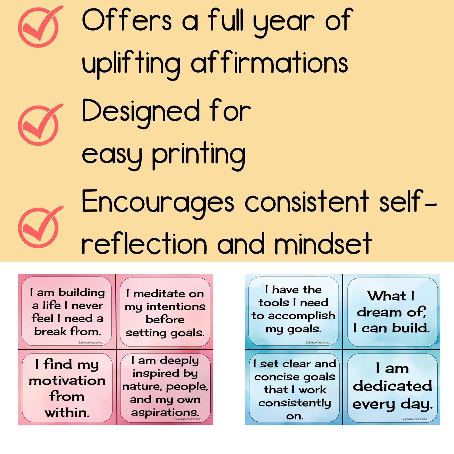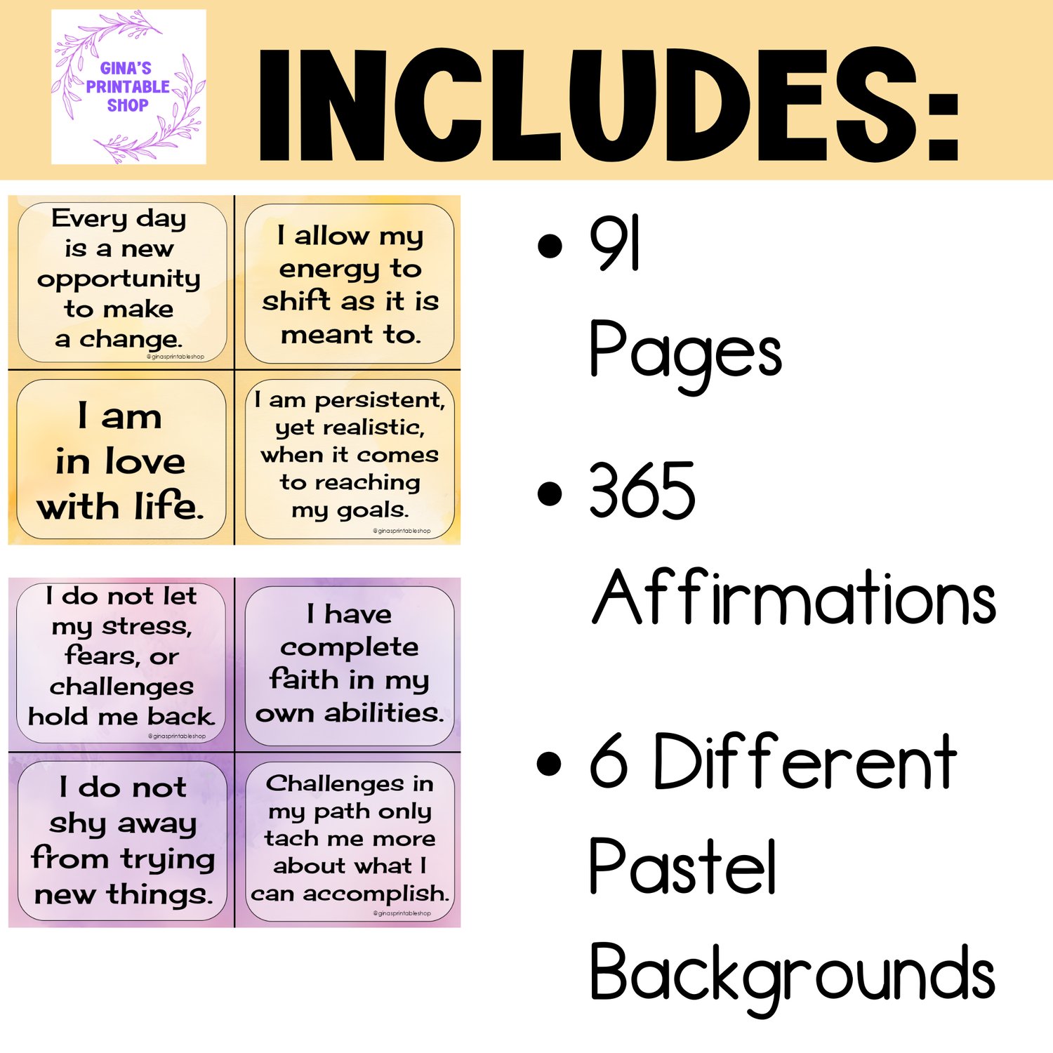 ❤️A Full Year of Value in One Download: With 365 unique affirmation cards, you’re getting lasting inspiration that you can reuse again and again throughout the year.