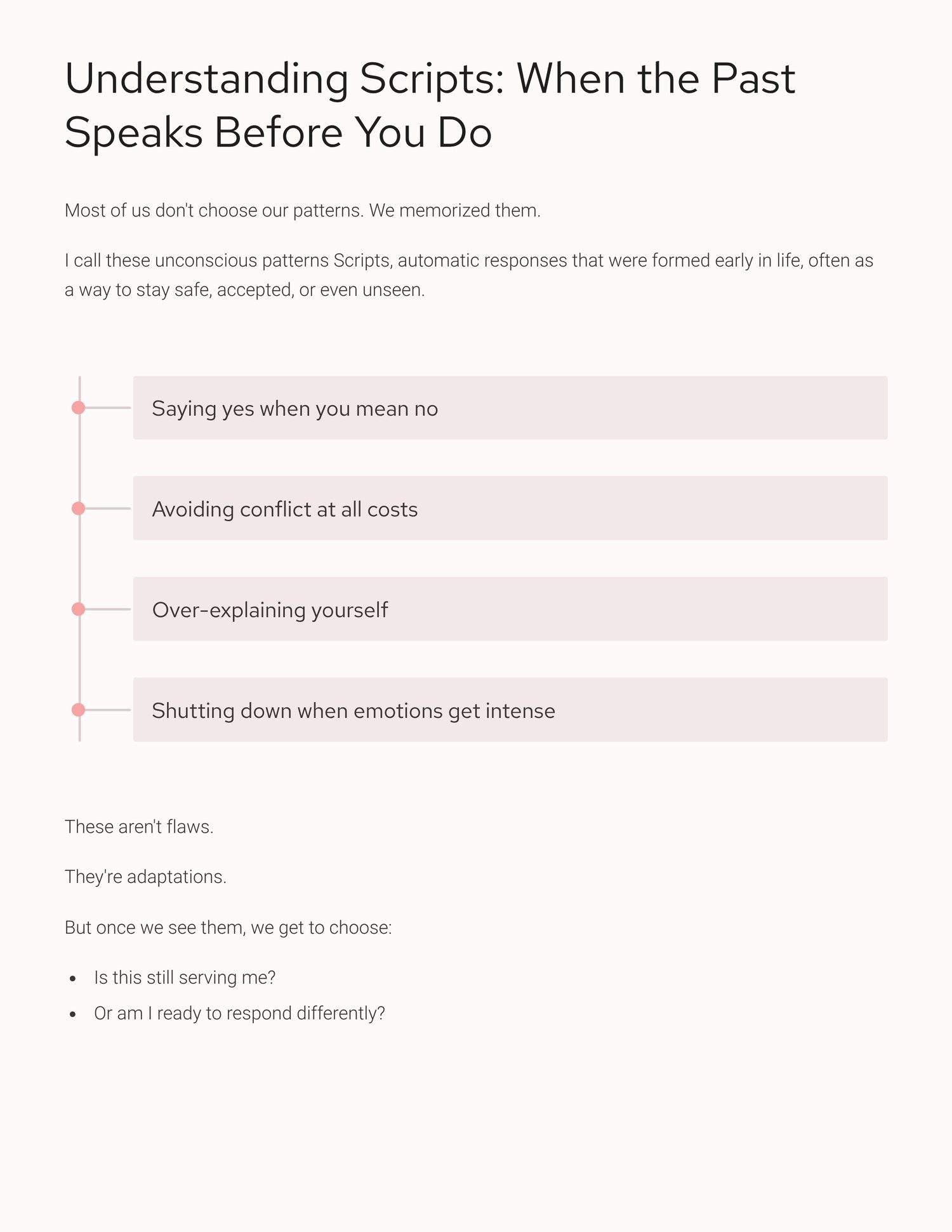 This isn't about fixing yourself because you're not broken. It's about healing by noticing what's happening inside you, so you can make choices that actually feel right for you.