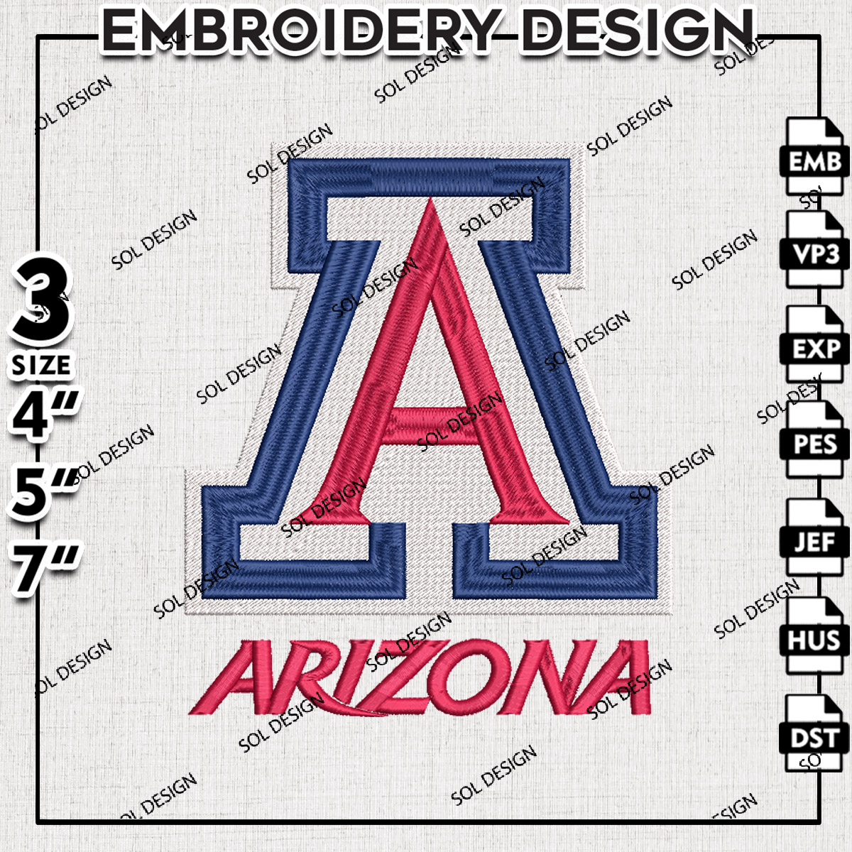 NCAA Arizona Football Team Logo Embroidery Designs, NCAA Arizona Wildcats Machine Embroidery Files, NCAA Logo embroidery designs, NCAA Arizona Logo, Digital Download