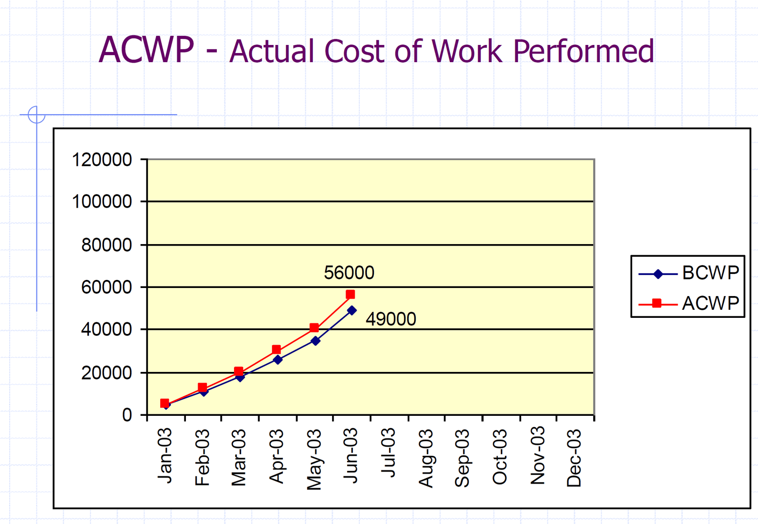 Actual Cost (AC): Total cost of work completed by a certain date.