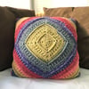 Crochet pattern to create a square cushion cover, written in US terms. Sample uses a gradient yarn so no colour changes and ends to weave in.
