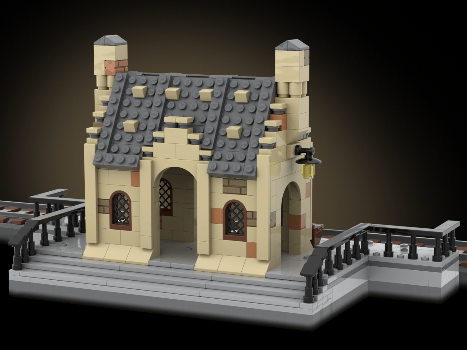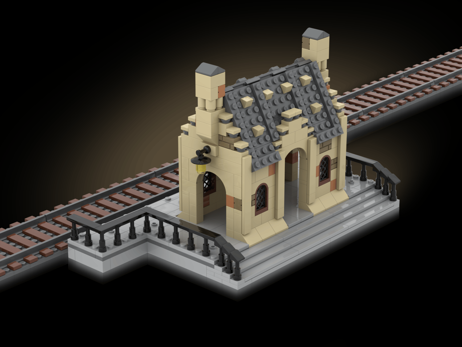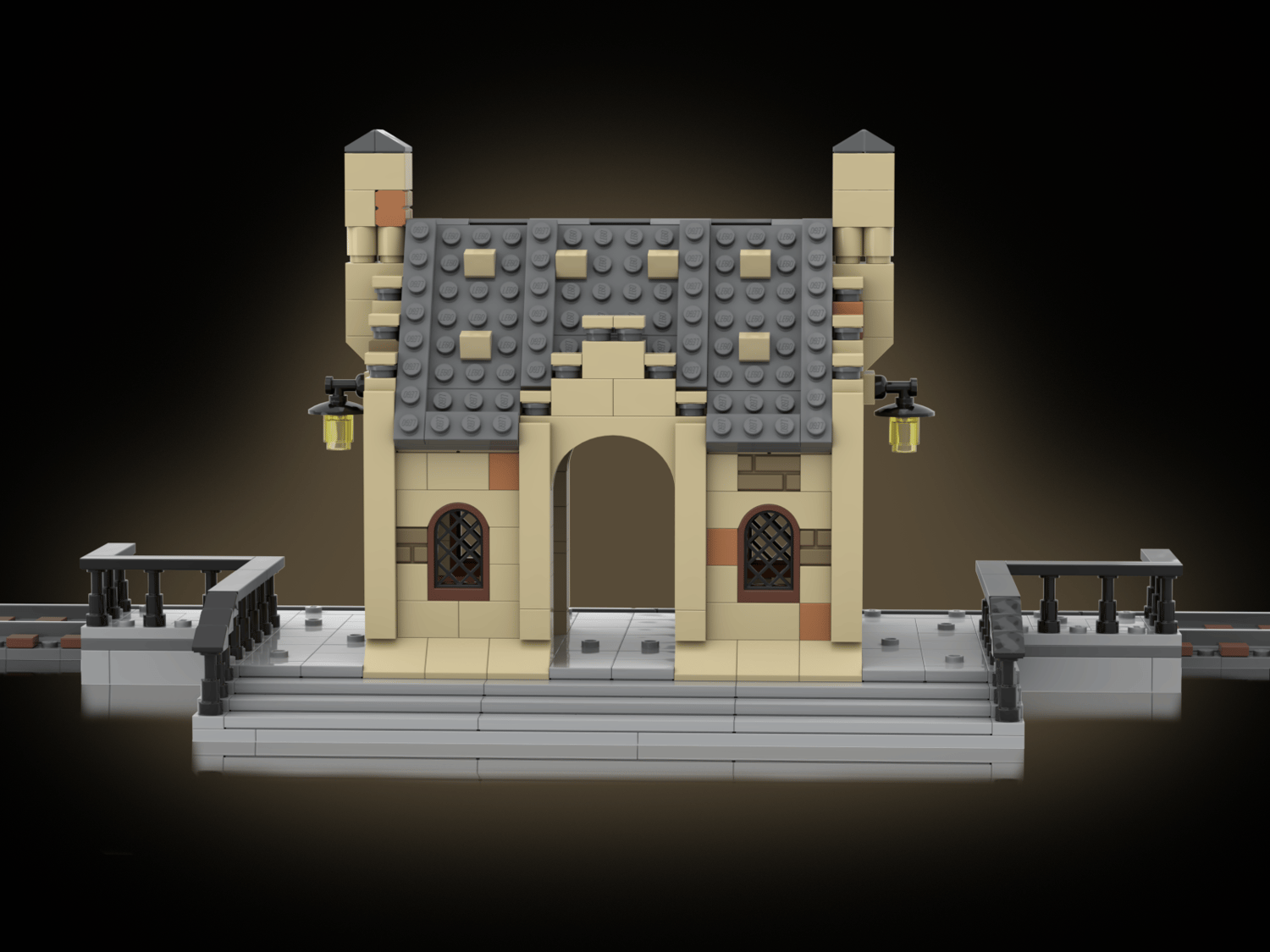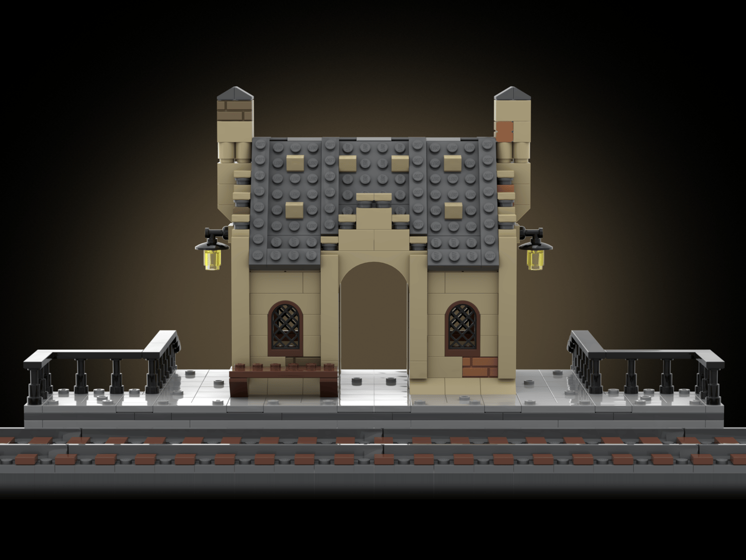 The floor of the station is mostly covered by 2x2 tiles, some of them have one stud on top (jumper plate) to be able to attach minifigures securely.