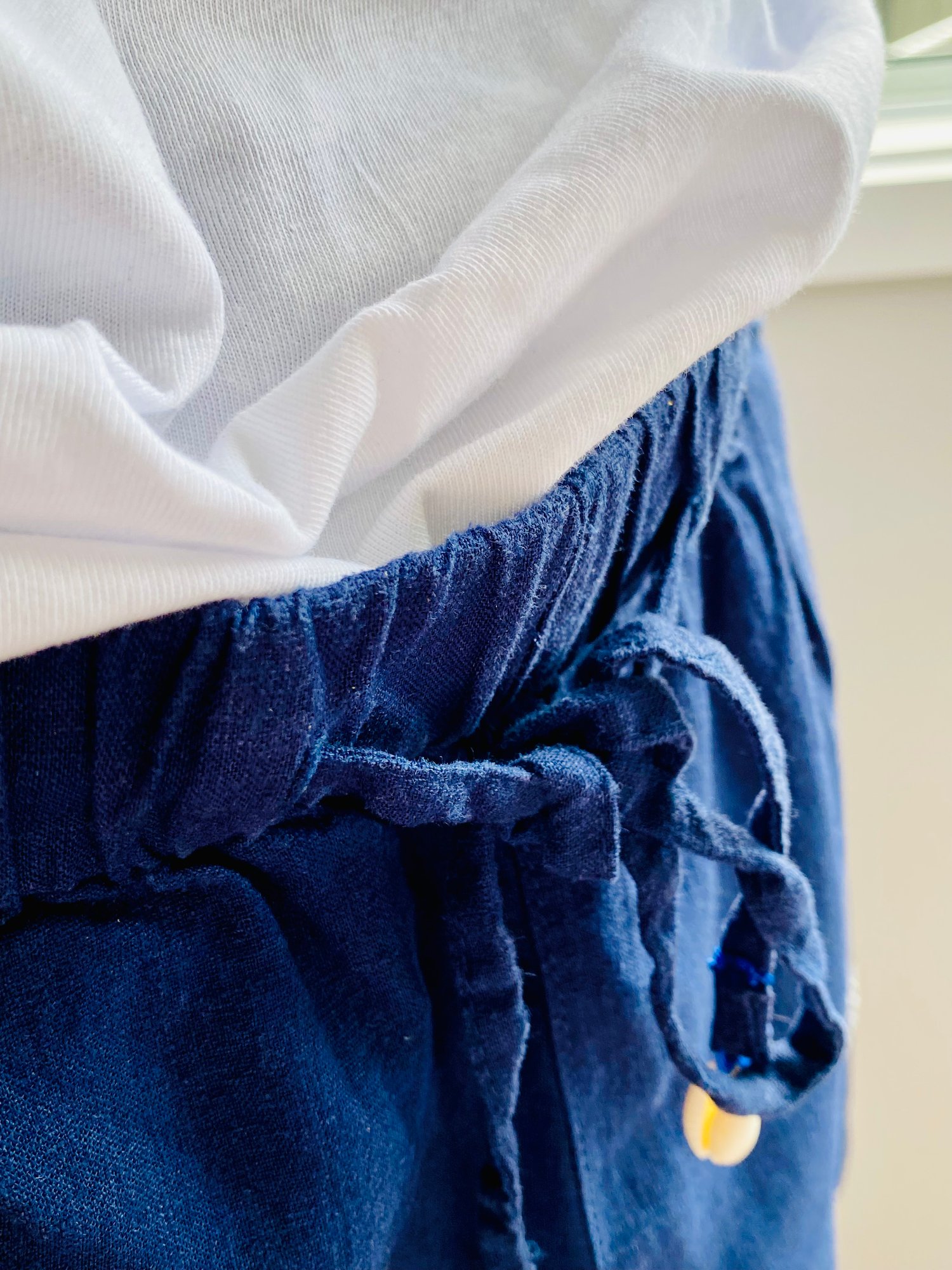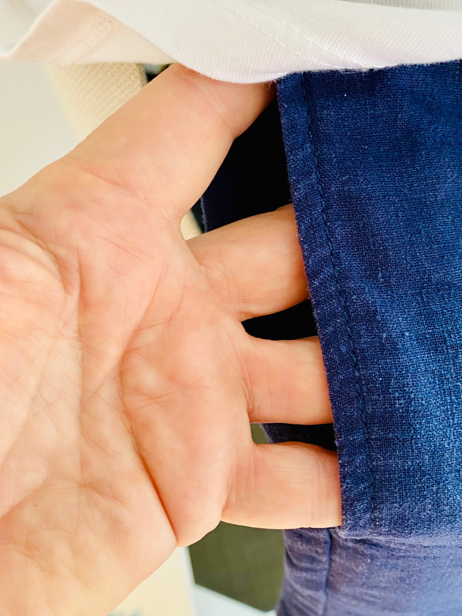 We strive to offer a truly unique, individually crafted garment. Each piece is handmade rather than mass-produced, and as such may feature natural variations that celebrate its individuality. The thread comes from long-loved craft stashes generously collected from fellow makers. By repurposing these materials, we do our part to support the environment through thoughtful recycling. These shorts are made from 100% Australian organic linen. When you shop with us, you can do so with confidence, knowing you are investing in a garment created with care, integrity, and sustainability—one to wear, treasure for years, and hopefully pass on for someone else to enjoy.