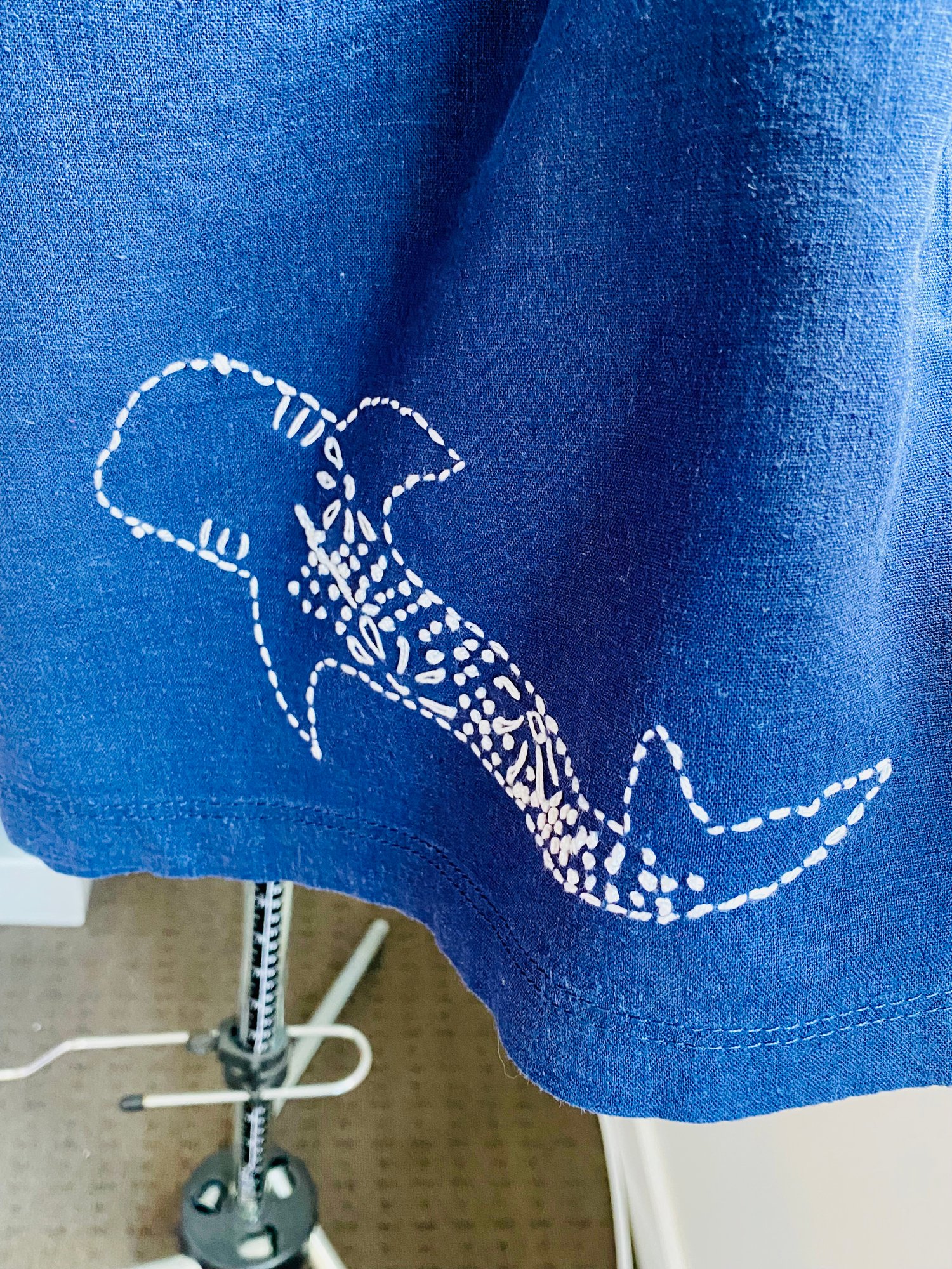 - Hand embroidered