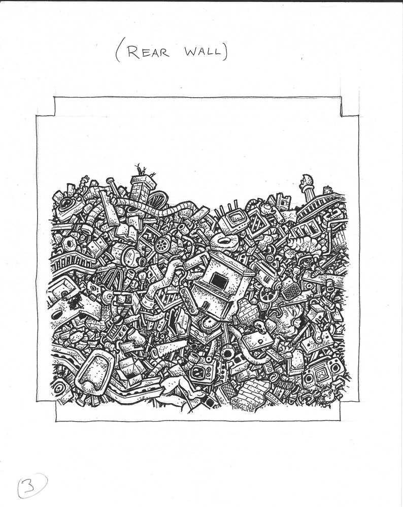 (NOTE: Many pages from Chrome Fetus Studios are composites of different drawings on multiple bits of paper and flotsam - sometimes crudely cobbled together with glue or tape. You may also find pencil marks, scribbled notes and graphite thumbprints. Consider these features as a means of certifying the genuineness of the artwork!)